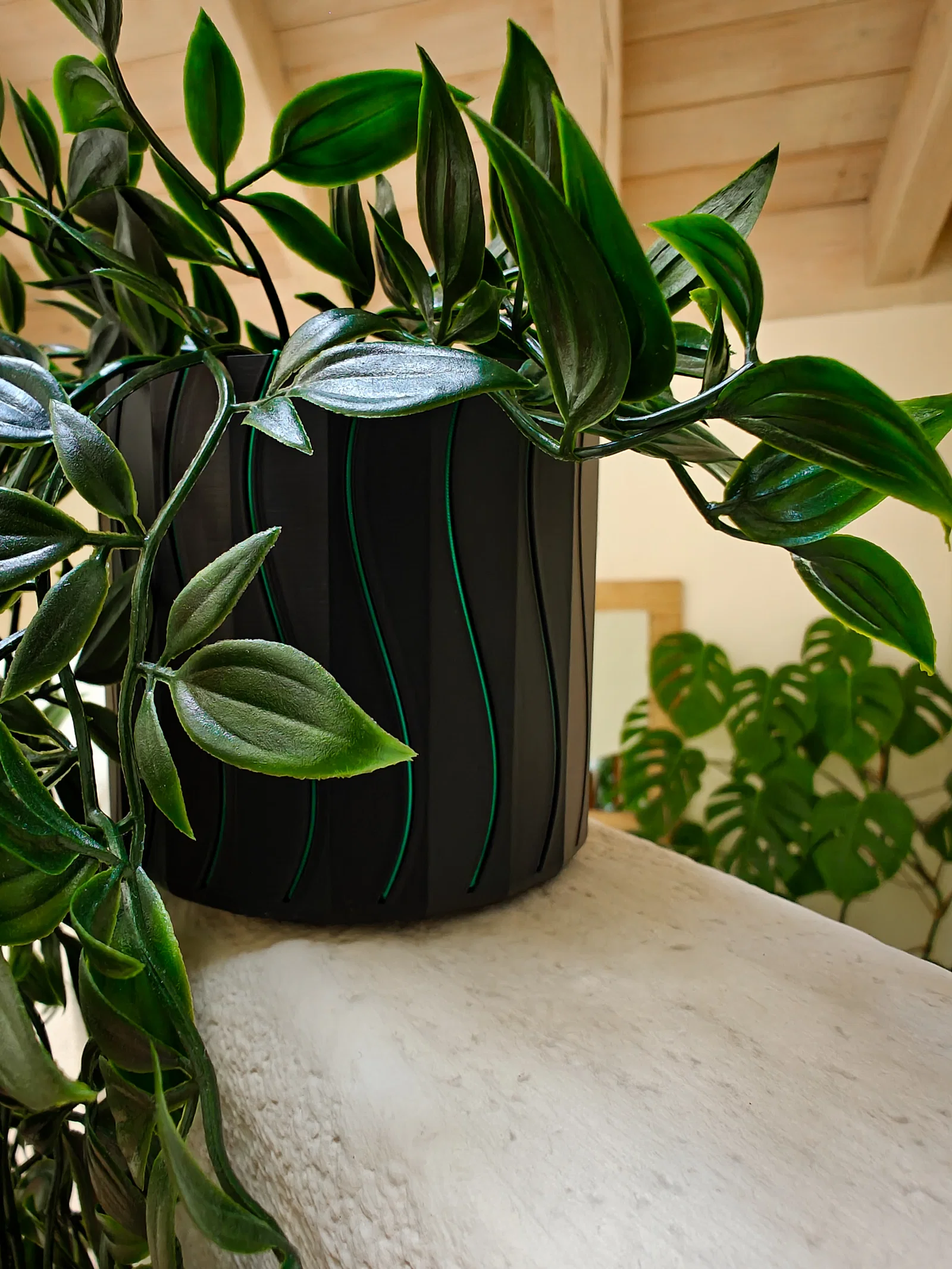 Chậu hoa treo tường hiện đại, có thể tùy biến đa màu bằng cách nhét filament vào các rãnh sẵn có rồi cắt phần trên. Không cần supports, chỉ cần 2 vít M4 đầu chìm hoặc băng keo hai mặt. Hợp chậu 9cm.