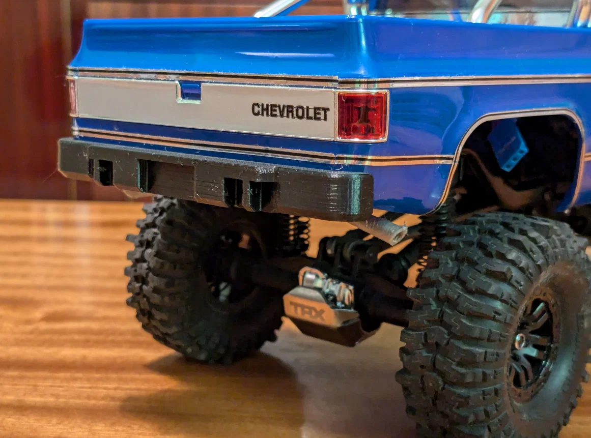 Mình làm thêm một món cho TRX-4M K10 – cản trước và cản sau. Cả hai có khu vực theo kích thước biển số EU, đồng thời có chỗ để gắn D-ring (mình chỉ dùng loại tự làm nên độ khớp có thể không chuẩn; nếu bạn cần thì cho mình biết chi tiết, mình sẽ chỉnh sửa model lại).