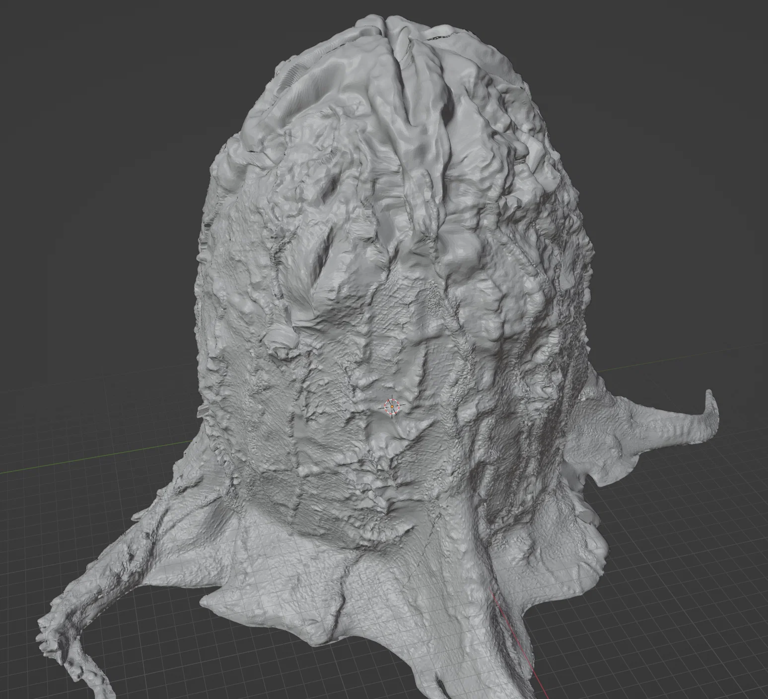 Bản gốc chia thành nhiều phần. Mình đã gộp các phần lại—khó hơn dự tính vì chúng không khớp/không canh hàng với nhau. Sau đó mình quyết định bỏ gần hết phần trên và làm lại phần còn lại từ đầu; khoảng 25% phần trên của model là mình tự dựng (scratch) luôn. Mình có thử gập các “lá” vào nhưng không hiệu quả lắm.