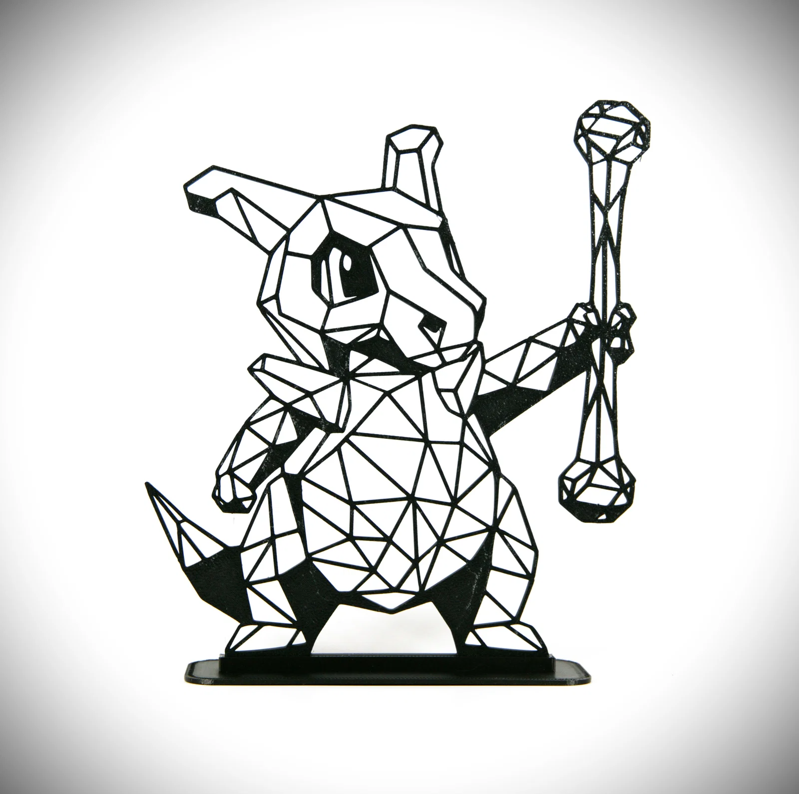 Hãy cảm nhận sự dũng cảm đầy day dứt của Cubone với bản in 3D low poly hình học này, khắc họa chú Pokémon cô độc giơ cao cây chùy xương. Thiết kế dùng các mảng cạnh sắc và đường nét góc cạnh để tái hiện chiếc mũ bảo hộ biểu tượng cùng vũ khí của Cubone, làm nổi bật nét mạnh mẽ nhưng vẫn phảng phất buồn man mác. Rất hợp cho fan Pokémon và những ai mê nghệ thuật tối giản; món này sẽ thêm một chút “resilience” và phong cách biểu tượng vào bộ sưu tập của bạn.