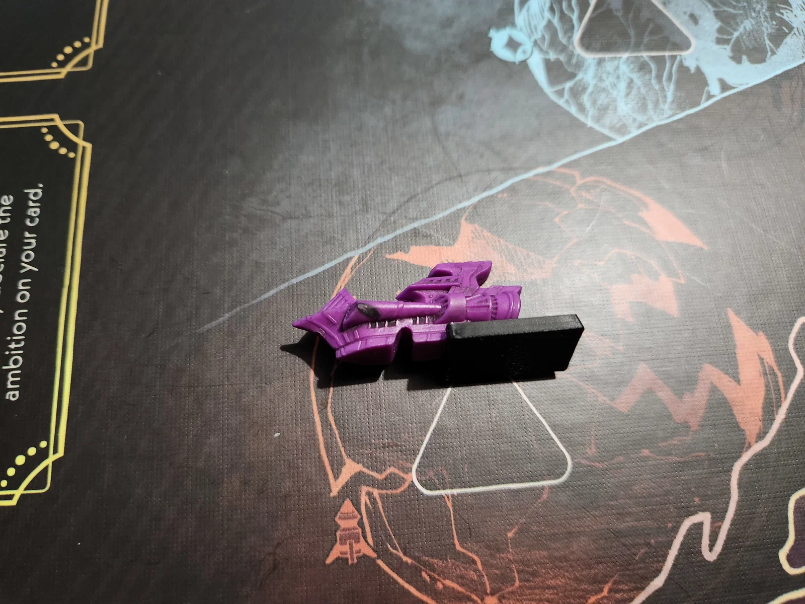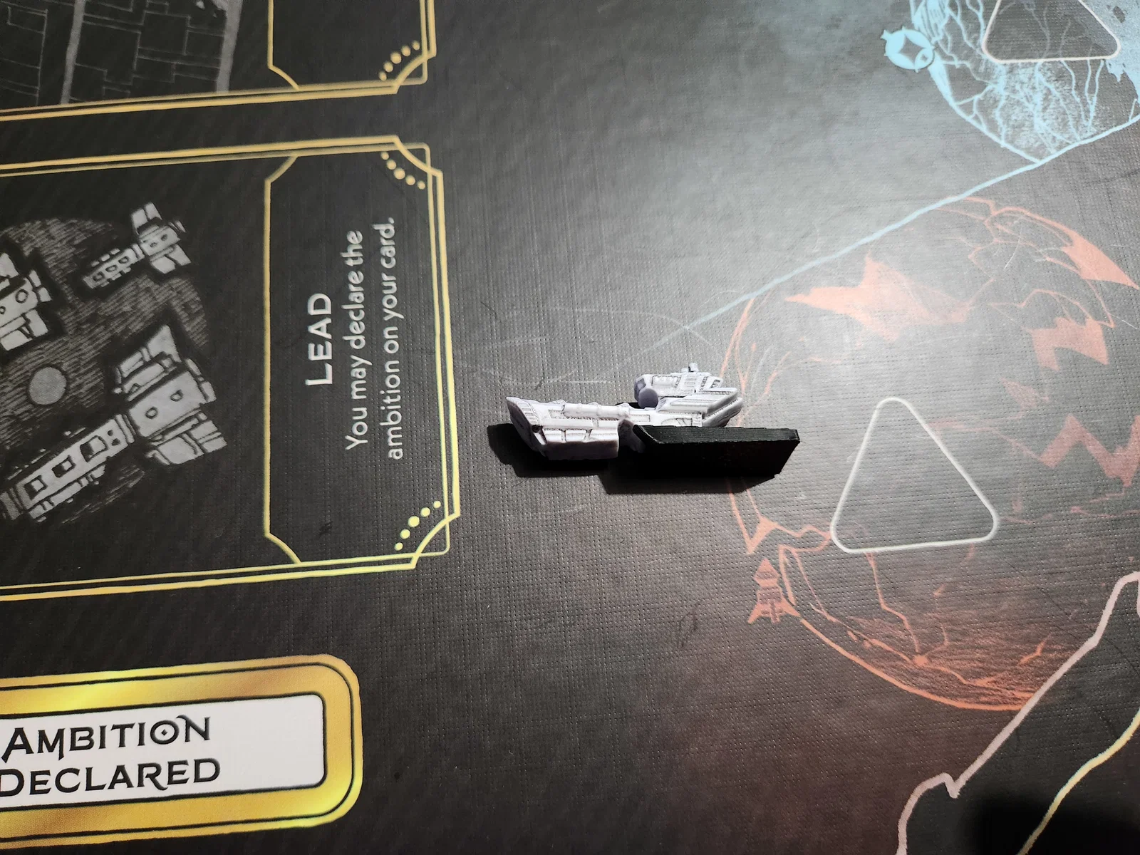 Để gắn cho main ship bases: luồn phần base phía trước có góc nghiêng vào từ phía sau con tàu, rồi trượt tới khi góc của base đã in khớp với phần mũi phía trước của tàu.