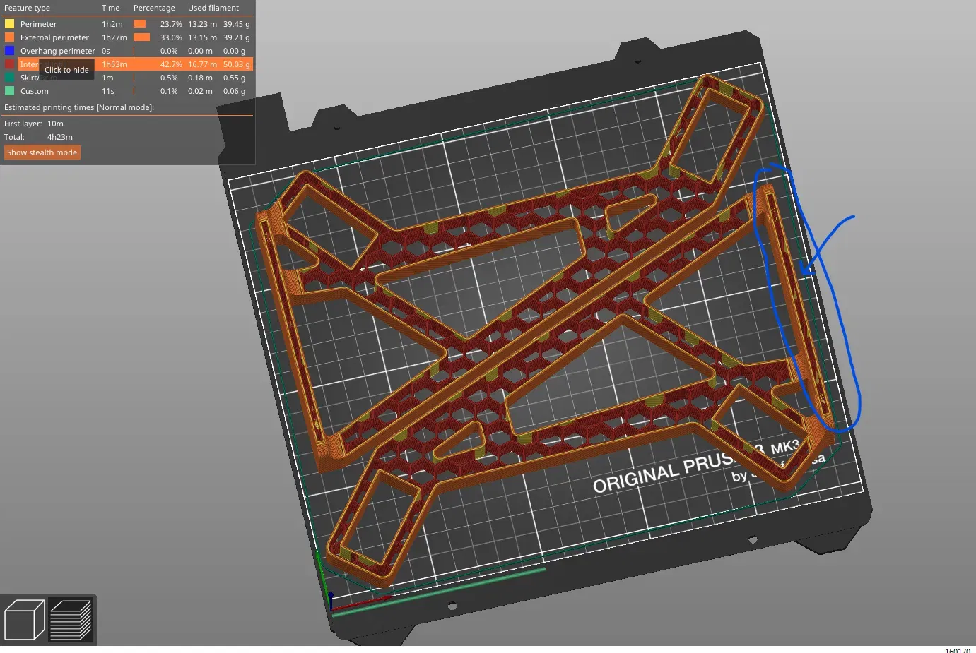 Quá kỹ thuật, giá đỡ filament tối ưu hóa hình học. In với 0 lớp trên và dưới và 10% độ đầy tổ ong để đạt được hình dạng như tôi có ở đây. Không cần hỗ trợ, 2-5 viền, chiều cao lớp .35mm (.6 vòi phun). Có thể dễ dàng đặt 2 cái cùng một lúc trên bàn in i3 mk3 (xem hình ảnh hoặc hướng đặt). Nếu bạn làm ít hơn 4 viền, bạn có thể phải thêm một bộ điều chỉnh khoảng cao để lấp đầy phần trên của bộ phận gắn nếu sử dụng 0 lớp trên (xem hình ảnh). Tùy thuộc vào độ dài bạn muốn giá đỡ, bạn có thể phải in nhiều hơn để hỗ trợ nó (giá đỡ có thể dài như bạn muốn). Tôi chỉ làm một giá đỡ dài 1.5' nên tôi đã in hai cái để hỗ trợ mỗi bên. Giá đỡ này sẽ đủ mạnh cho bất kỳ nhu cầu giữ filament nào bạn có (có khả năng sẽ bị rách khỏi tường trước khi giá đỡ bị gãy). Tôi đã thêm tệp .step nếu ai đó muốn remix cho nhu cầu của riêng mình.