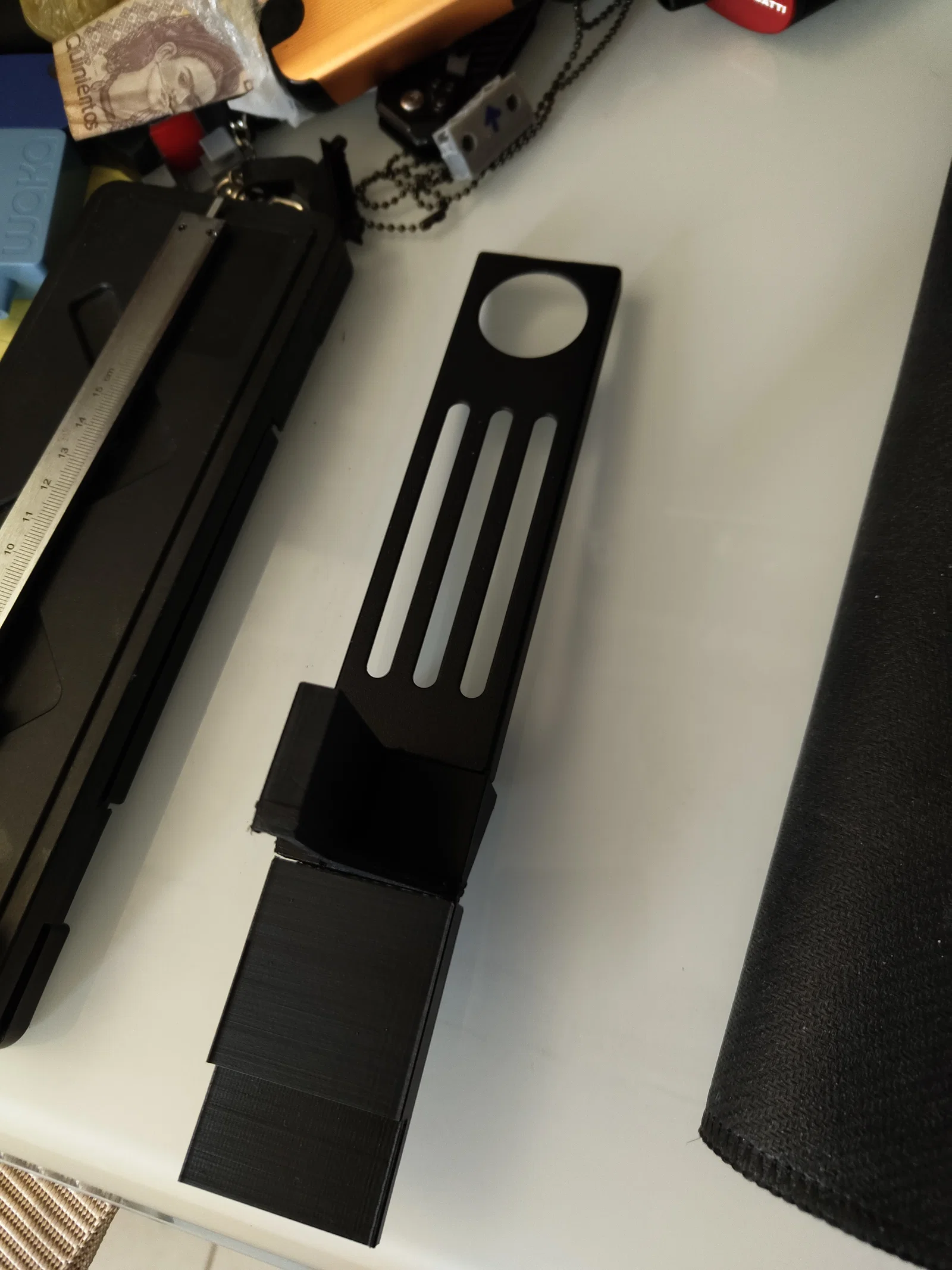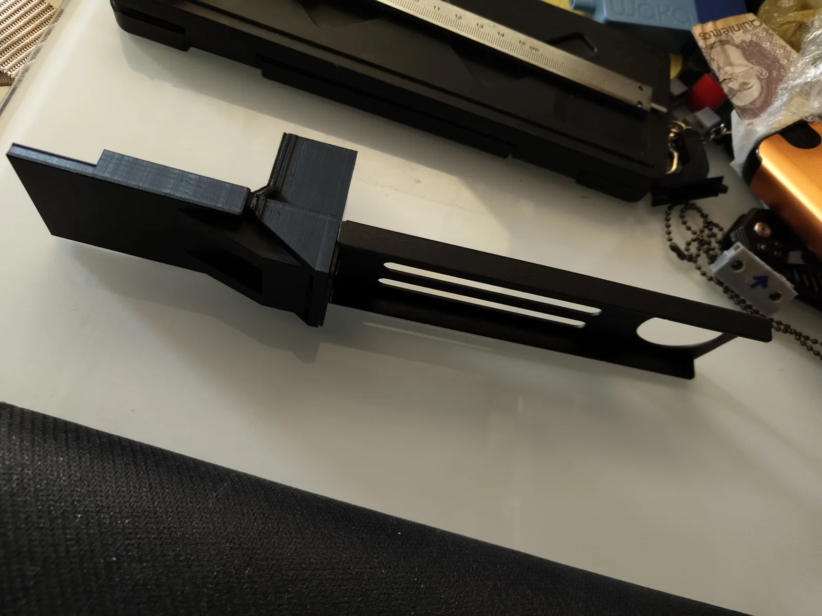Không nghi ngờ gì nữa, bracket treo cuộn ngang Vanilla MKGRL đúng là thứ mình đang tìm. Tuy nhiên, mình nhận ra phần kẹp/điểm bám trên khung máy bị chịu lực khá lớn khi gánh trọng lượng cuộn filament. Nhất là khi mình còn đang dùng Anti-shake construction của Alex Y, nên mình làm thêm một thanh chống kéo dài từ bracket xuống phần đế máy, đồng thời tận dụng luôn đế của Anti-shake construction để tăng độ ổn định.