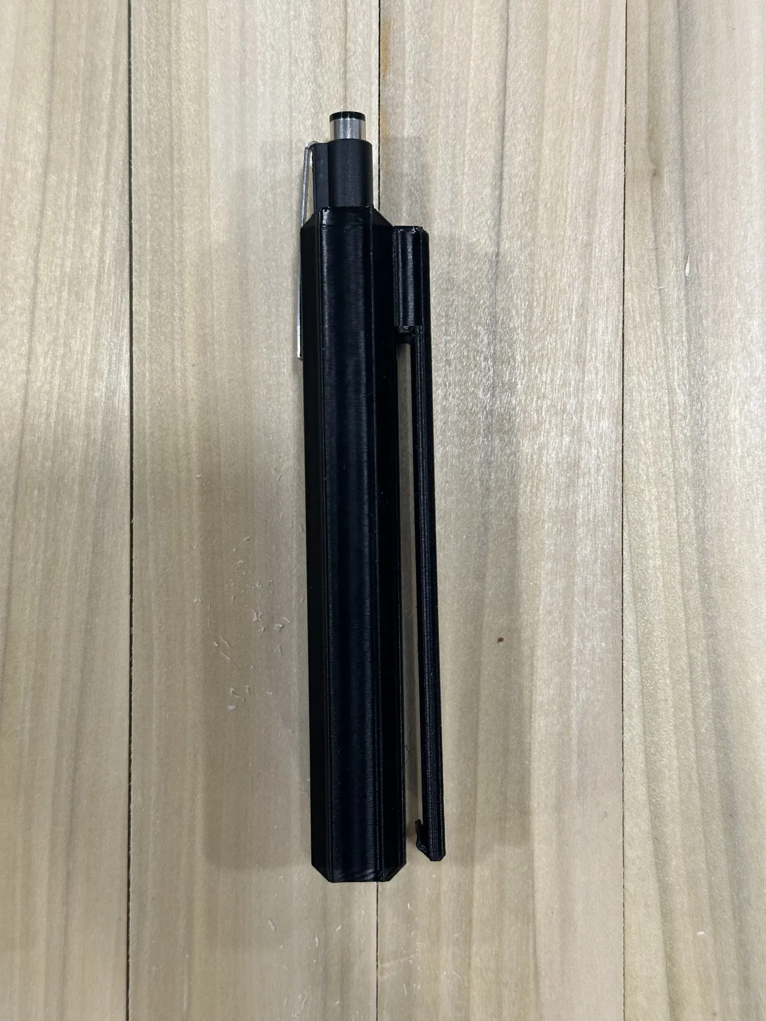 Sự vừa vặn của cây bút là chặt chẽ, nhưng tôi đã thử nhiều cây bút thực tế (được sản xuất từ cuối những năm 90 đến nay) và tất cả đều vừa vặn đúng cách. Kẹp của bút được lùi vào trong thân để tránh bị vướng, chỉ có phần trên được lộ ra.