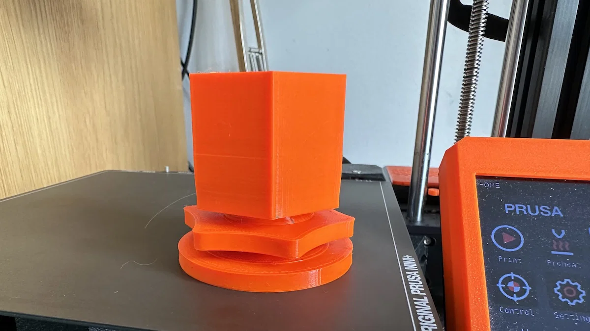 In bằng Prusament PETG Orange, 4 perimeters, 15% infill.