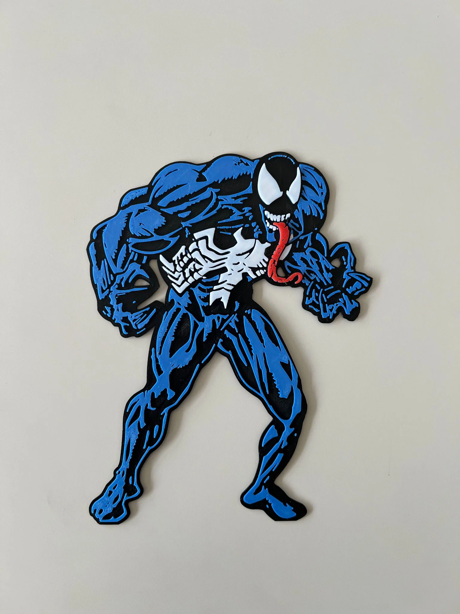 Mẫu tranh treo tường 2D chủ đề Comic Venom (NO AMS). In theo hướng dẫn đổi màu bằng cách pause theo layer để ra đúng các mảng đen, xanh dương, trắng và đỏ; lưu ý không scale theo trục Z để tránh màu bị lem.
