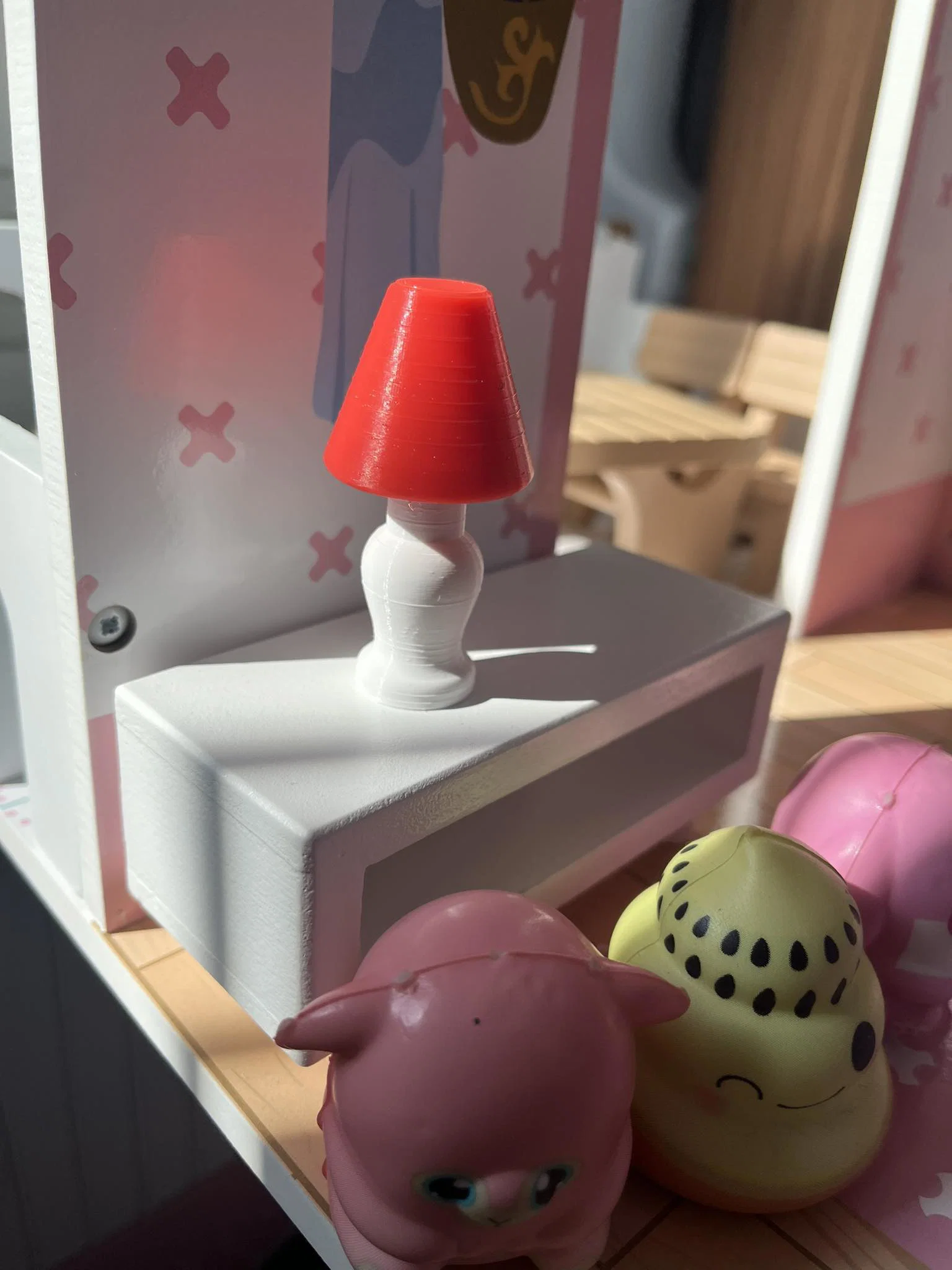 Mẫu đèn trang trí tỉ lệ 1:6 cho nhà búp bê Barbie hoặc dùng trong diorama. Thiết kế gồm 2 phần, in 3D không cần support, dễ ráp và phù hợp làm phụ kiện mini.