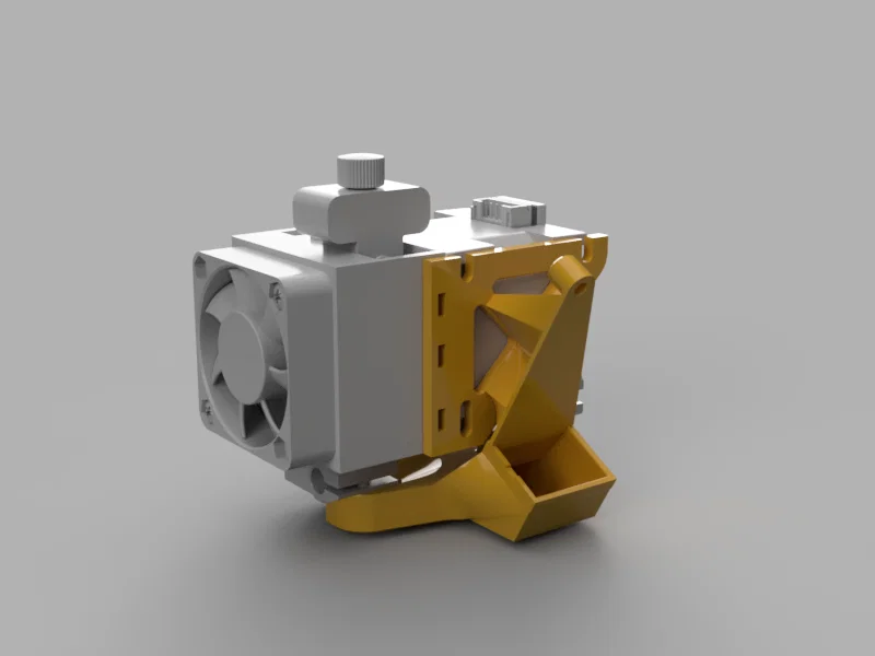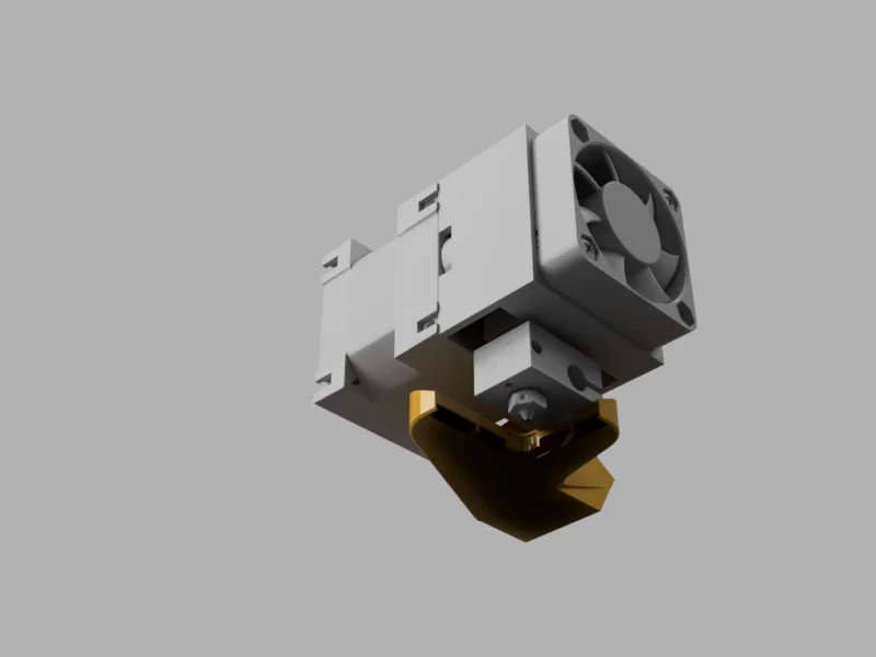 Mẫu này lắp lên E3D Hemera có sẵn, dùng 3 điểm bắt (hardpoints) trên toolhead và thổi gió xuống phía dưới đầu nozzle.