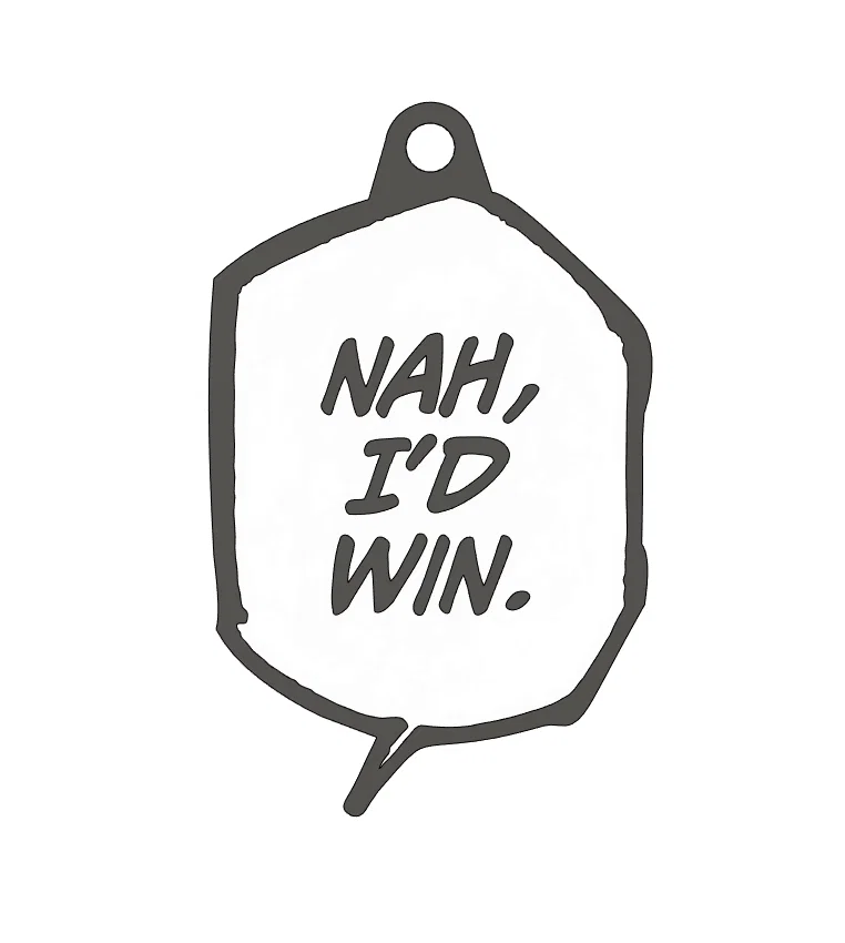 Móc khóa/charm bong bóng thoại “Nah, I'd Win.” In mặt chữ hướng lên và bật ironing để bề mặt mịn hơn. Muốn chữ đen thì đổi filament hoặc tô marker đen; có thể scale trong slicer nếu mẫu quá nhỏ.
