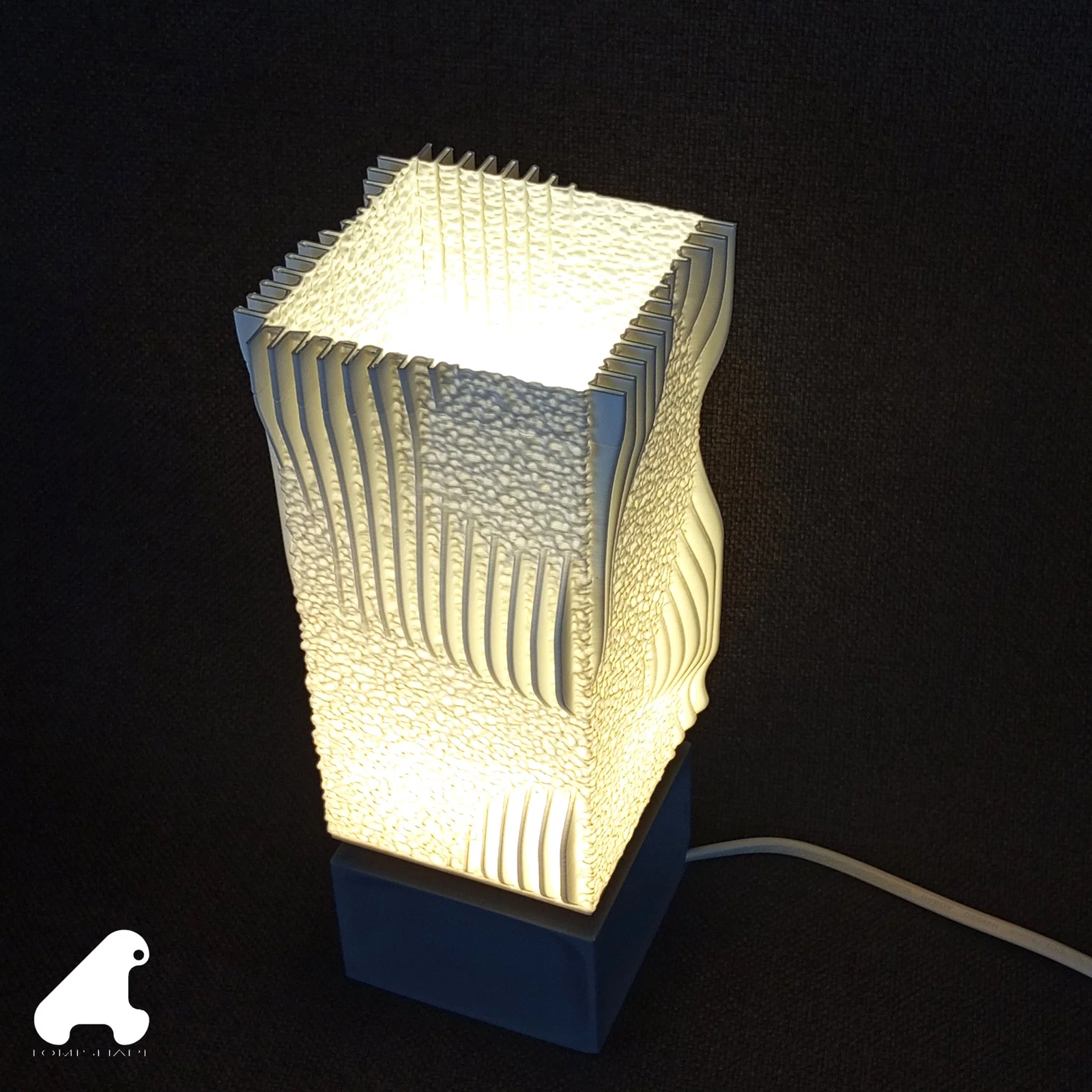 Mẫu đèn chân đứng với chụp đèn gợi hình tảng băng trôi, bề mặt tạo tương phản ánh sáng. Cao khoảng 260 mm, dễ in nhanh. Chụp in vase mode, đế in thường. Dùng đui E14 và bóng LED để an toàn.