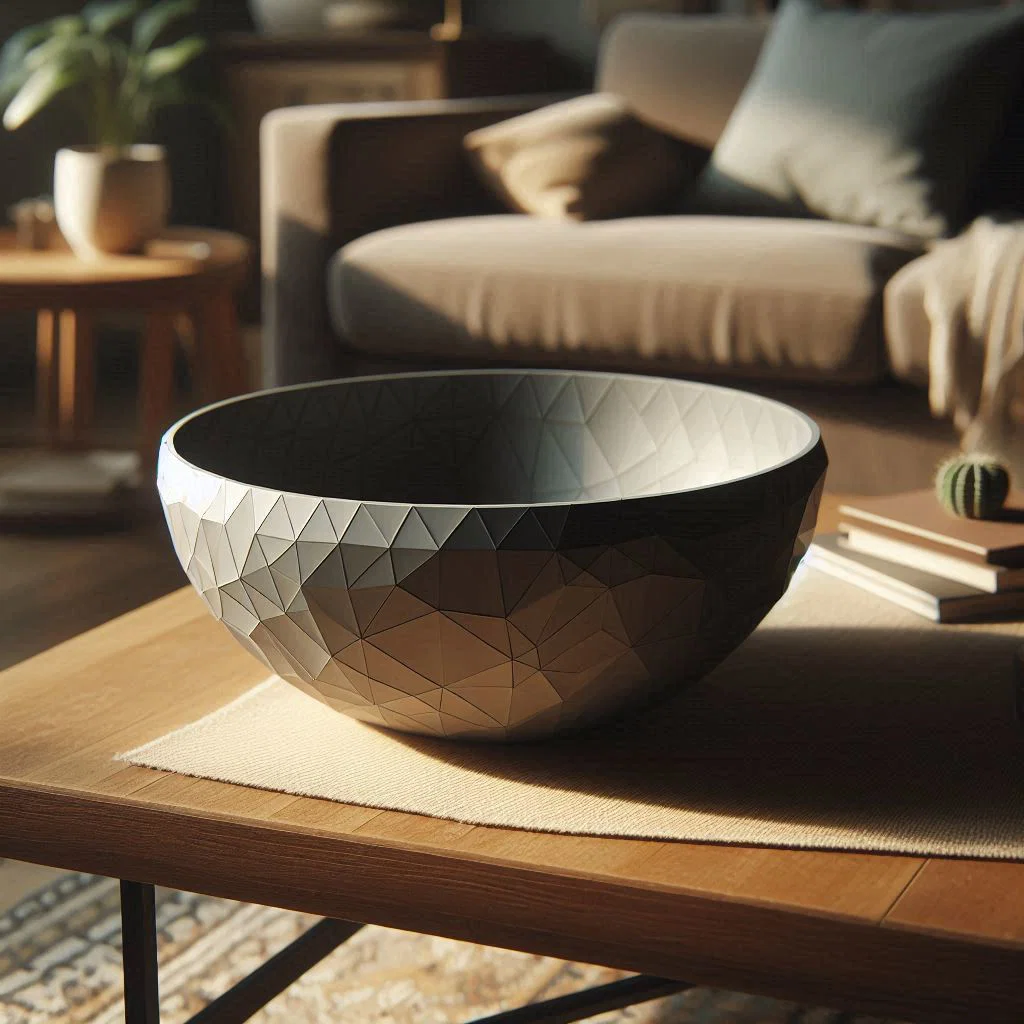 Chiếc tô designer low poly mãn nhãn, mỗi tam giác một kiểu tạo hiệu ứng bắt mắt. Phù hợp trang trí nhà theo phong cách minimalist/modern, dùng làm khay để chìa khóa, đồ lặt vặt hoặc catchall tray.