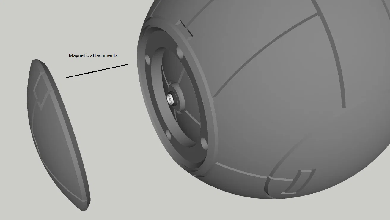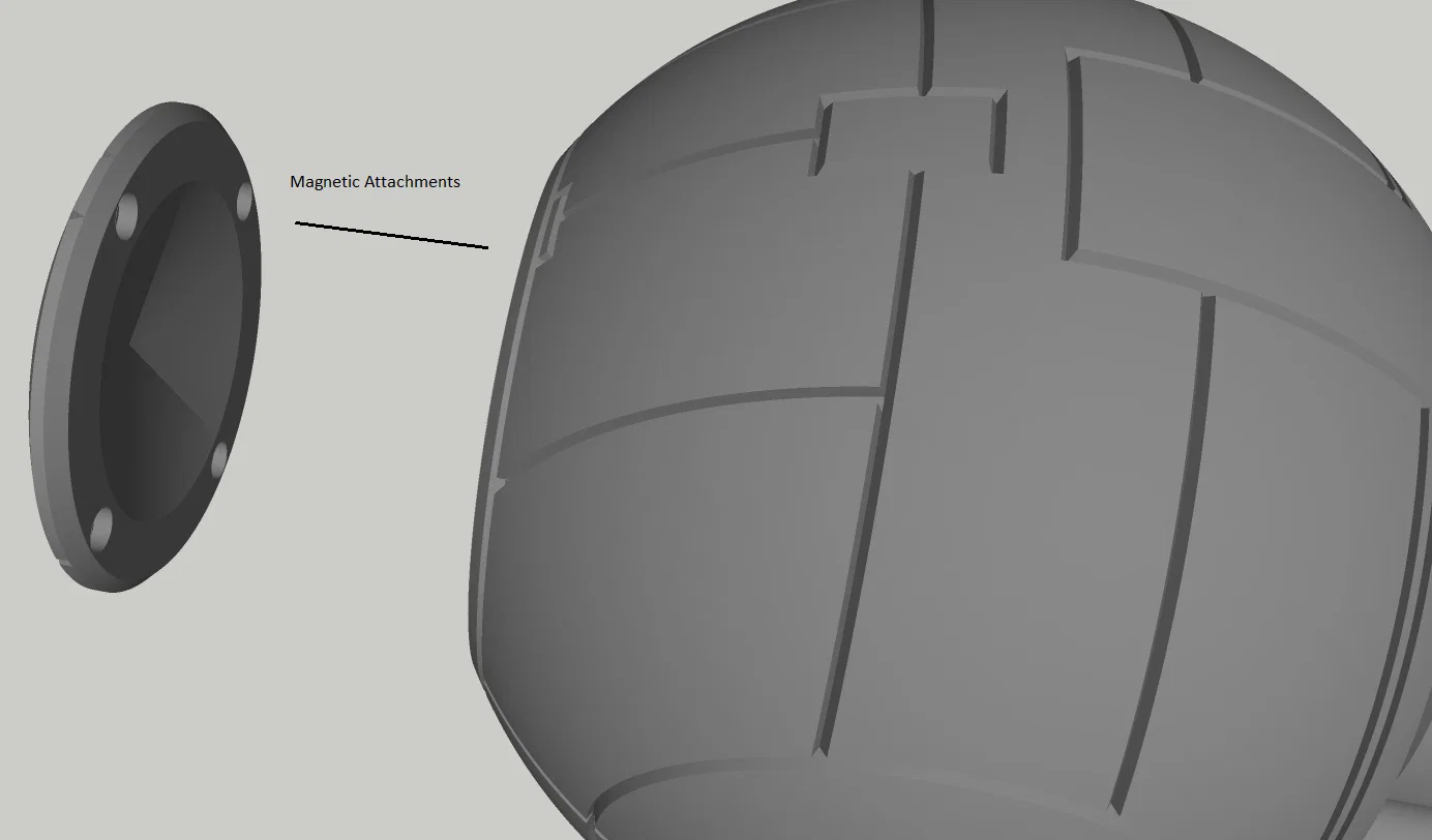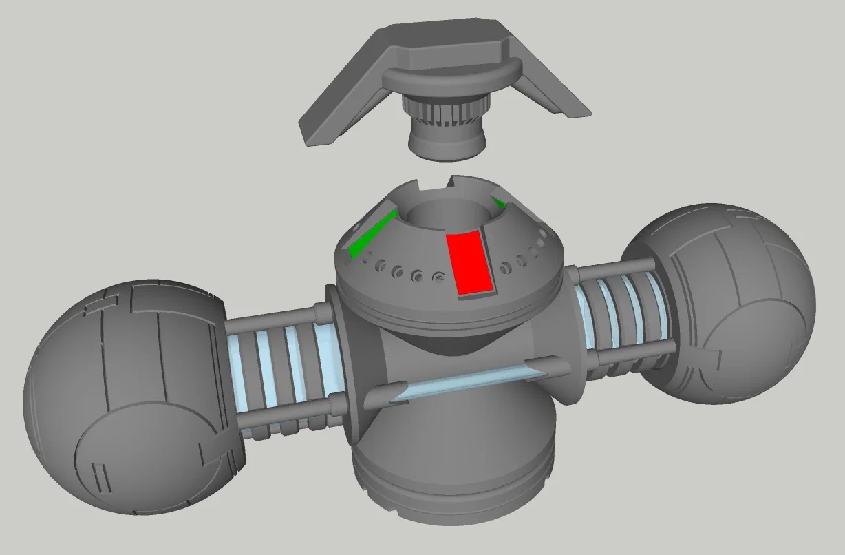 Mô hình prop này dùng nam châm (Magnets) để kích hoạt đèn (khi Control Interface Handle gạt sang vị trí on thì nó sẽ kích hoạt một công tắc dạng magnet, bật nguồn) và các nắp access hatch cũng được hít/đính bằng nam châm.