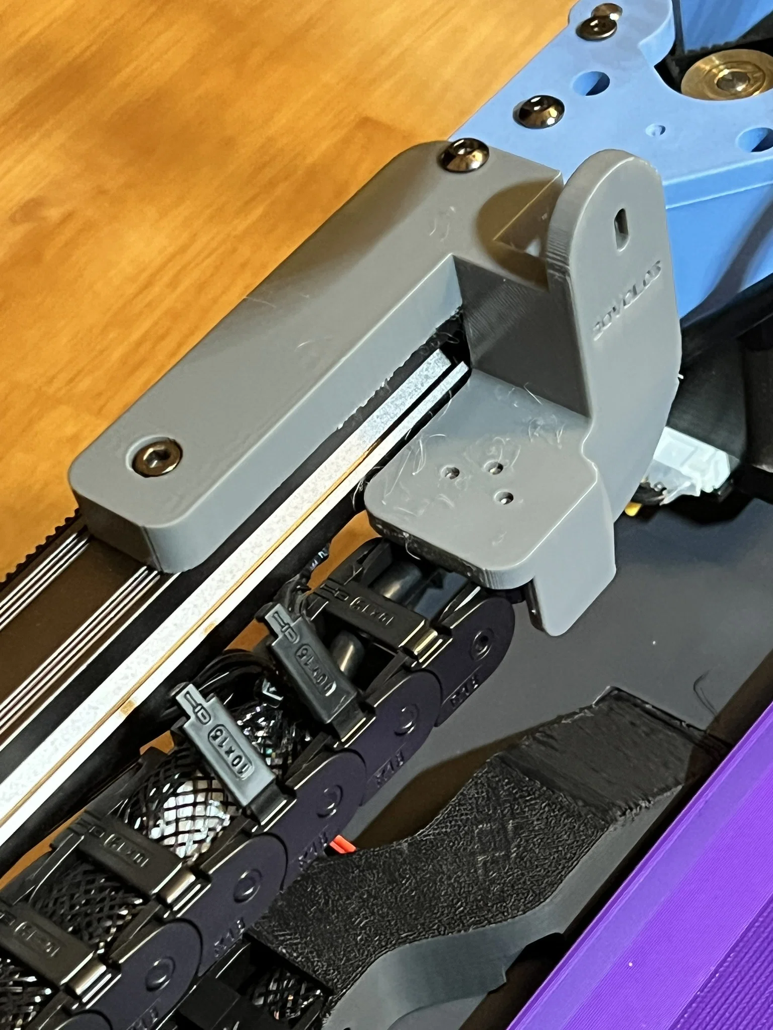 Mình vừa thêm một phiên bản mới với lỗ dài hơn để tương thích tốt hơn giữa các sai số dung sai khi sản xuất. Nếu bạn gặp vấn đề với vị trí lỗ bắt vít, hãy dùng “Cable Chain Mount relocated with longer holes”.