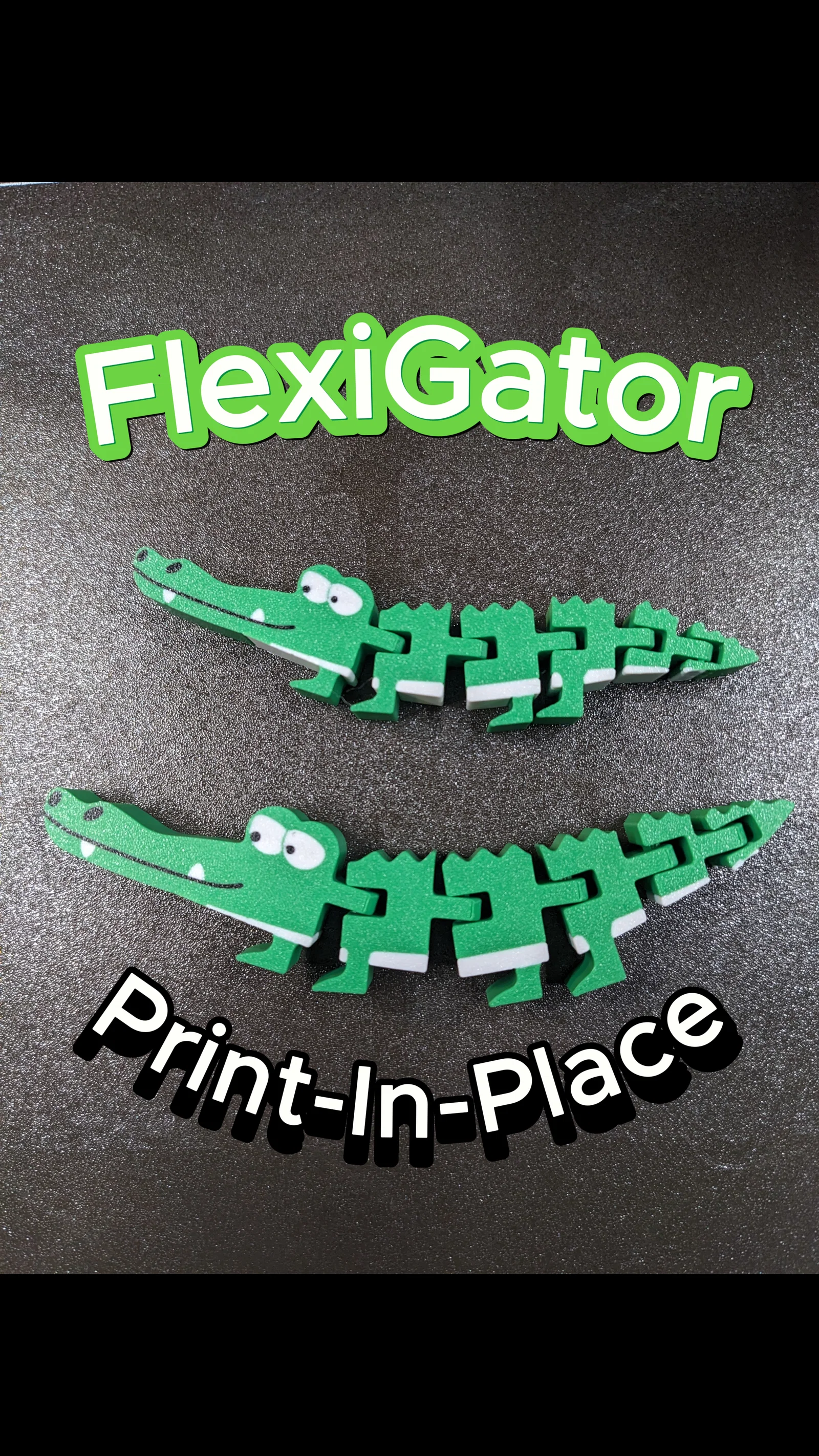 FlexiGator là mẫu cá sấu Flexi phong cách cartoon, dạng print-in-place nên in xong khỏi cần lắp ráp. Có bản Single-color và multi-color. Khuyến nghị in PLA, nozzle 0.4mm, layer 0.2mm, infill 15%, không cần supports.