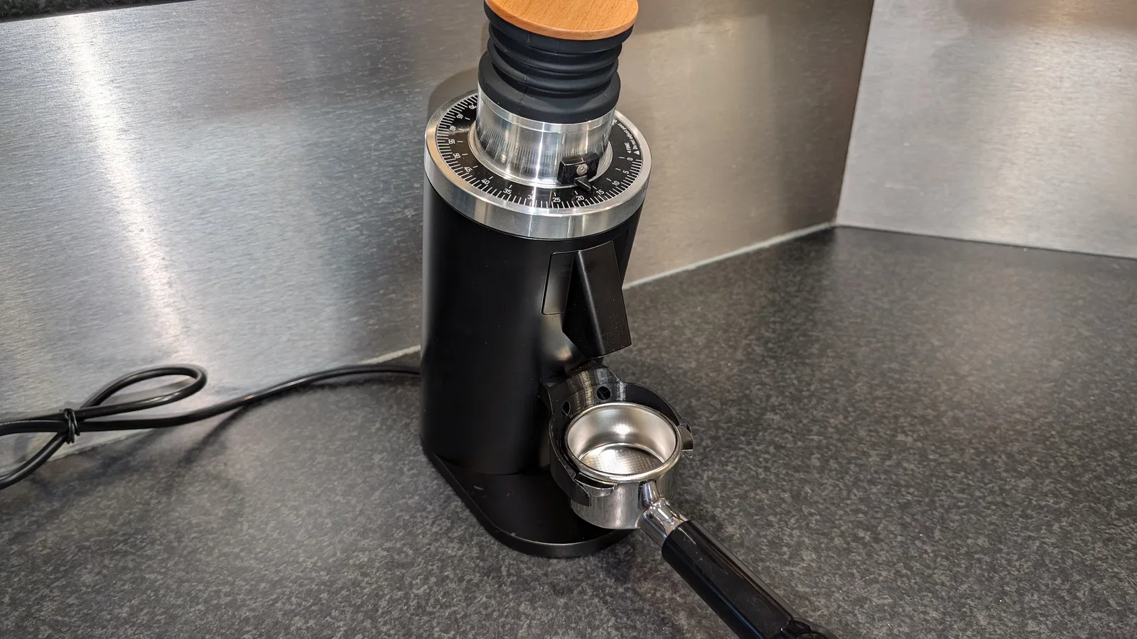 Thay thế cái holder zin để phù hợp với portafilter 54mm. Thiết kế để dùng chung với dosing ring loại nhỏ. Nếu xay trực tiếp vào portafilter mà không dùng dosing ring thì khả năng cao sẽ văng bột cà phê ra ngoài, khá bừa bộn.