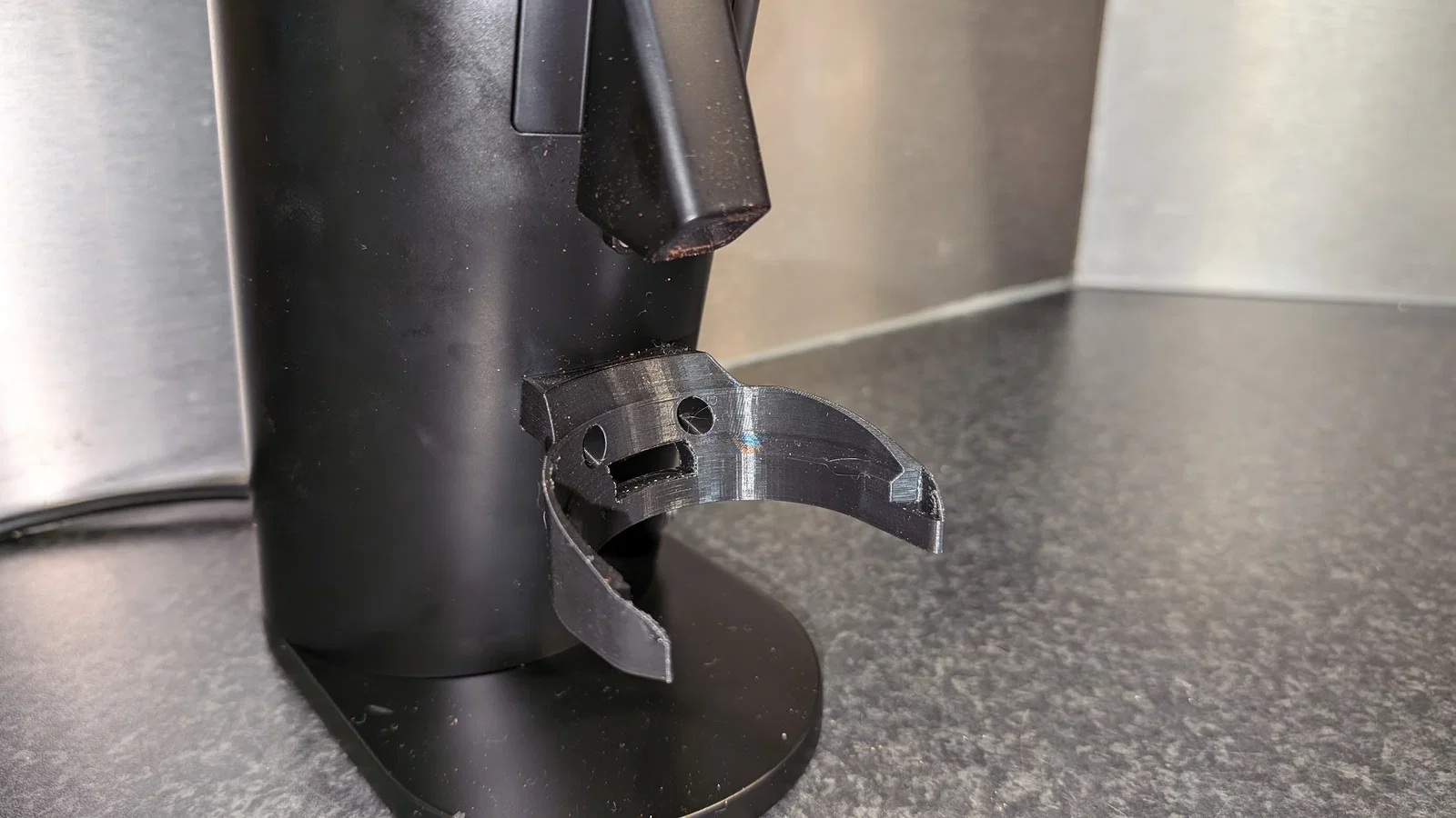Mẫu holder thay thế cho Turin DF54 để vừa portafilter 54mm. Thiết kế tối ưu khi dùng với dosing ring nhỏ; nếu xay thẳng vào portafilter không có dosing ring dễ làm văng bột, gây bừa bộn. Nên in kèm supports cho góc >85°.