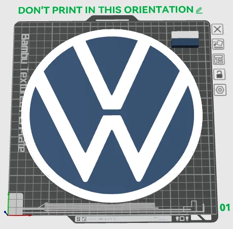 - Orientation: In với mặt logo úp xuống build plate. Tránh dùng chức năng “lay on face”. Thay vào đó, hãy xoay bằng chức năng “rotate” để đảm bảo logo đúng hướng. Nếu không, bạn có thể bị thiếu/khuyết first layer.