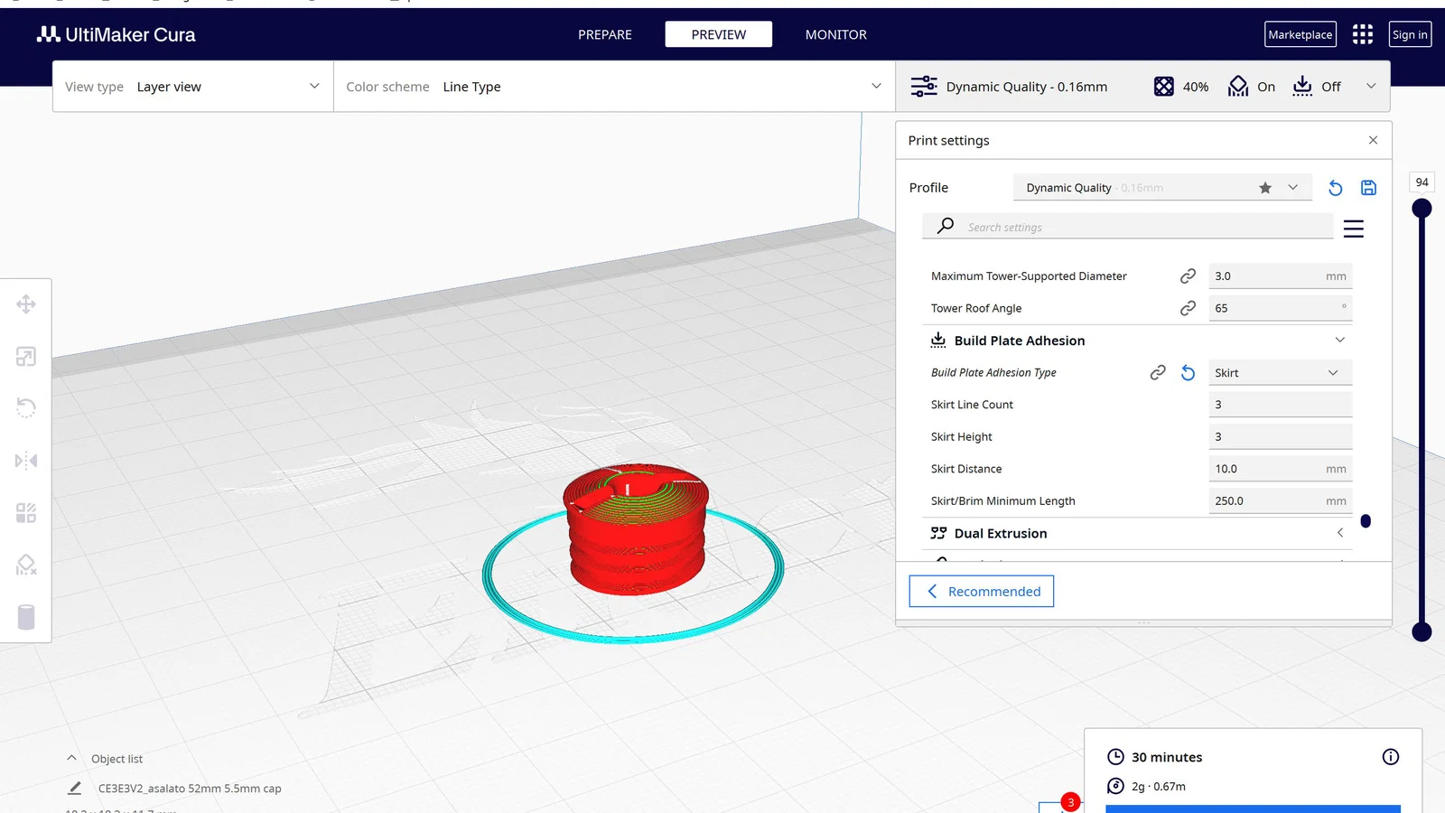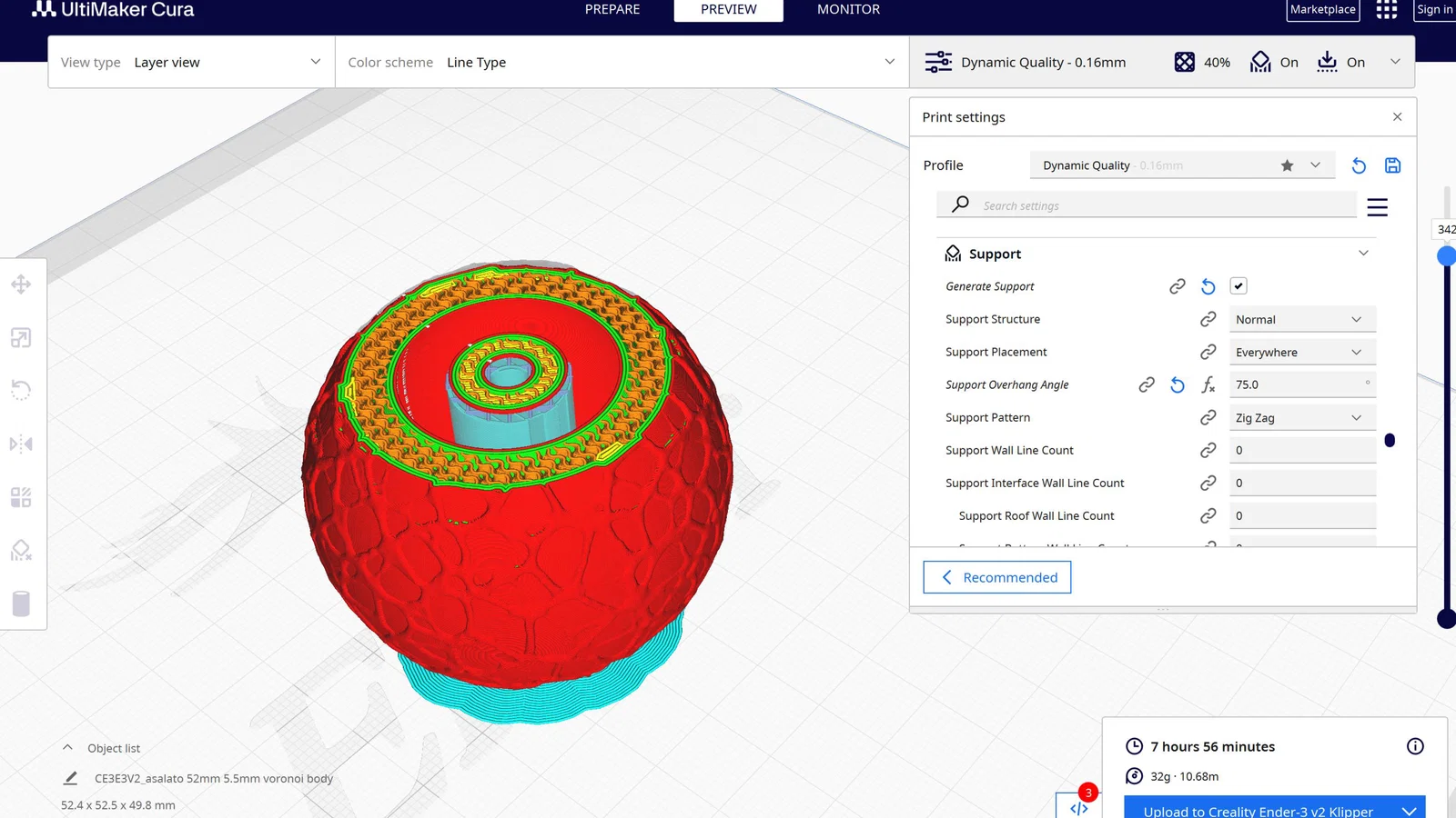 Khi in phần thân cần Support và BRIM; đặt Support Overhang Angle là 75%.