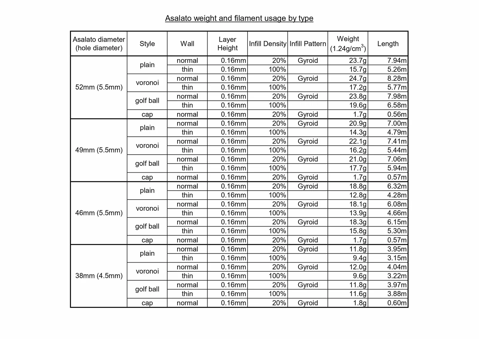 Đã bổ sung loại lightweight. Độ dày phần thân là 1.3mm (loại golf ball là 2.0mm). Thân loại lightweight nên in với 100% infill. Nắp (cap) dùng chung và nên in với 20% infill.