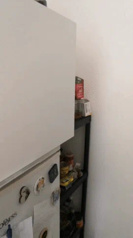 Mình mua một cái tủ vốn thiết kế để dựng đứng. Nhưng mình lại để nó nằm ngang trên nóc tủ lạnh. Thành ra cái nắp khi mở lên không tự đứng yên. Vậy nên mình làm một cơ cấu latching để đảm bảo nắp luôn giữ ở trạng thái mở, và có thể thao tác chỉ bằng một tay. Dĩ nhiên đồ này mua đâu cũng có, nhưng tự làm mới vui.