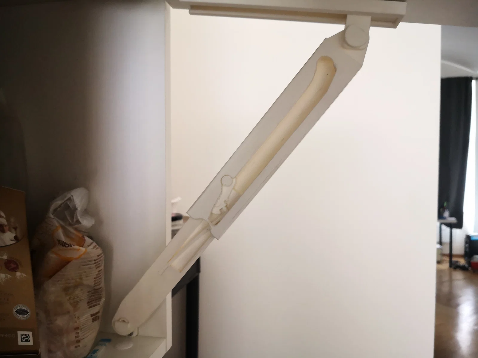 (Mình có hơi lo vụ “creep” của lò xo PLA vì nó vẫn bị căng nhẹ, nhưng sau 1 tháng sử dụng thì vẫn làm việc ngon lành. Để xem về lâu dài có cần redesign không.)