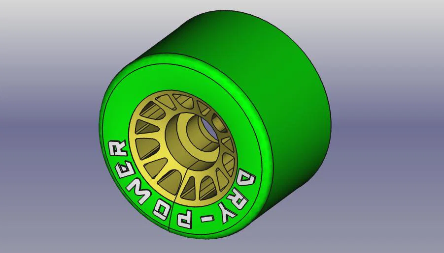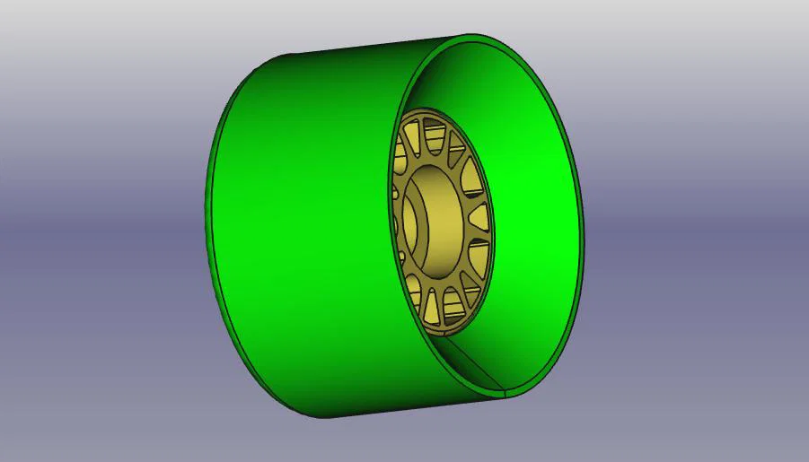 Mẫu bánh xe longboard/skateboard D70 x 43 (UPDATE 16.08.2024). Khuyến nghị lốp in TPU cứng, infill 100%; mâm in PETG infill 100% (có thể carbon). Có hướng dẫn hâm nóng ~90°C và ép theo trục kèm đồ hỗ trợ.