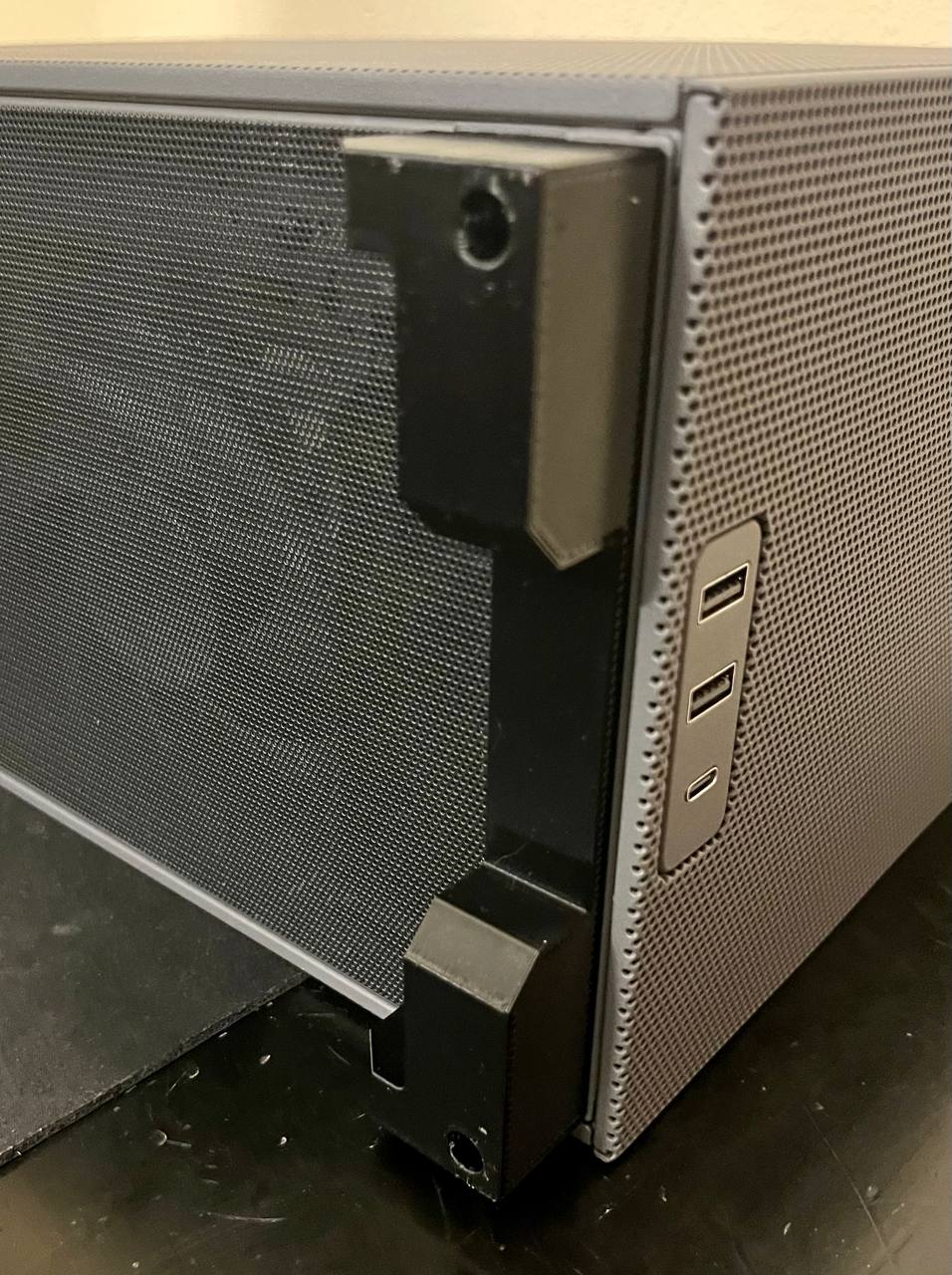 Bộ chân đế cao 25mm cho SSUPD Meshroom D, cao hơn chân zin khoảng 18mm để tăng airflow cho GPU và giảm nhiệt. In PLA với nozzle 0.6mm, layer 0.3mm; nên đặt mặt phẳng xuống bed và dùng supports. Không fit Meshroom S.