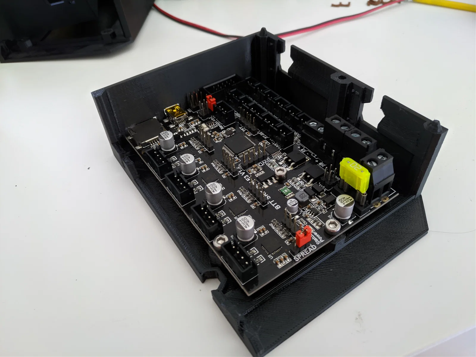 Phần này có thể gắn lên khung Original Prusa i3 và tương thích với SKR Mini E3 (V1.0, V1.2, V2.0). Bạn có thể dùng nắp che điện tử (electronic lid cover) zin của MK2S hoặc MK3S (tùy theo phiên bản khung máy của bạn) để làm nắp.