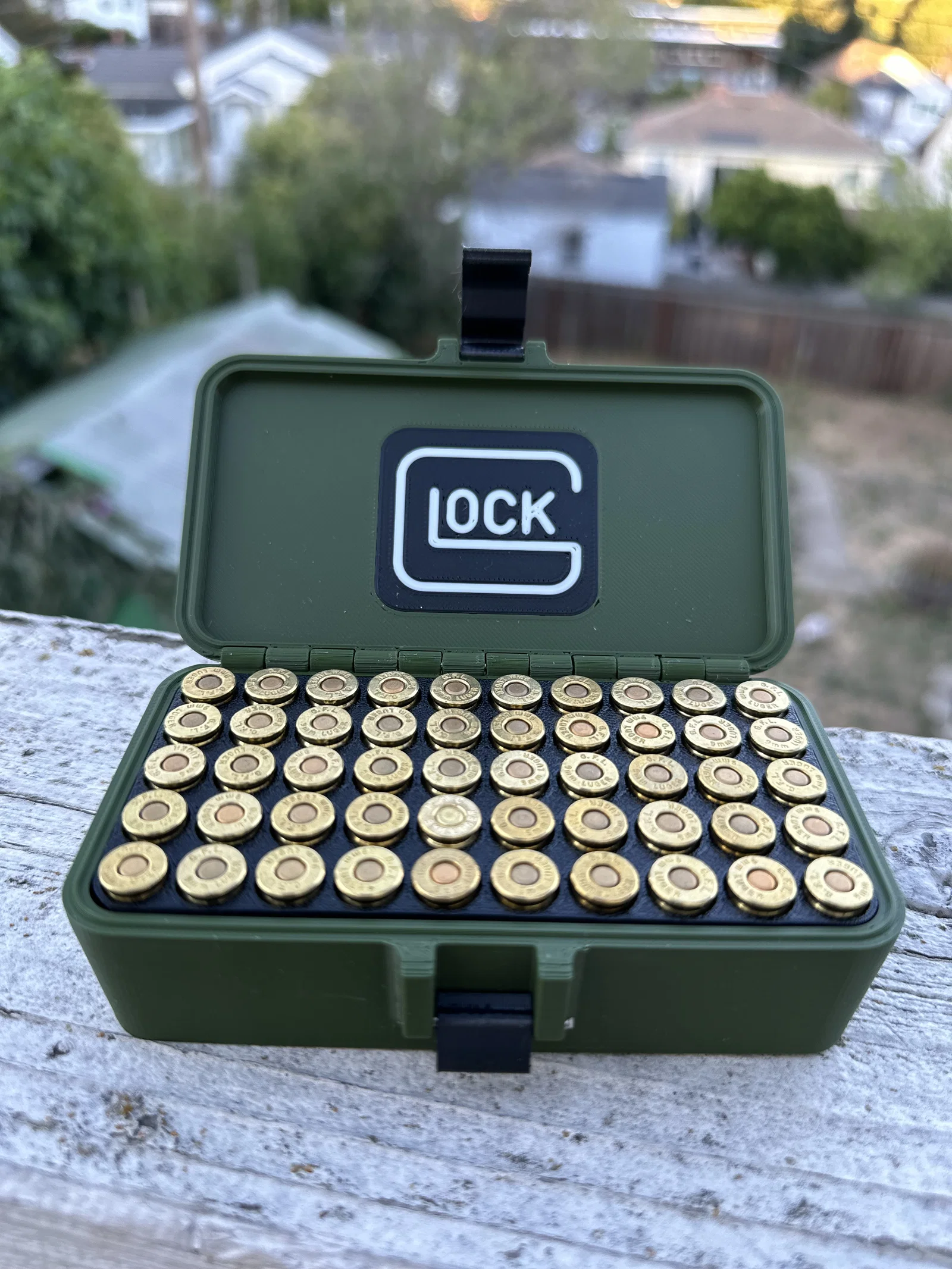 Bản hộp đạn 9x19 theo phong cách Glock, dựa trên thiết kế của Tomson Design. Tác giả chỉ remix phần nắp, các phần còn lại giữ nguyên; có thể in bằng nhiều vật liệu và dùng dây thép 1.6mm cho cơ cấu chốt.
