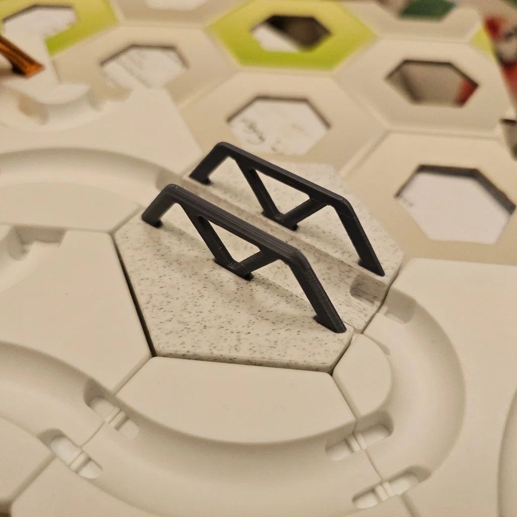 Tile cầu giàn (trestle) cho GraviTrax marble runs, giúp tạo đoạn “cầu” cho tàu bi chạy qua. Có video demo và hướng dẫn xoay base ring 30° bằng nhíp. In bằng Bambu Lab A1 Mini, PLA, không cần support.