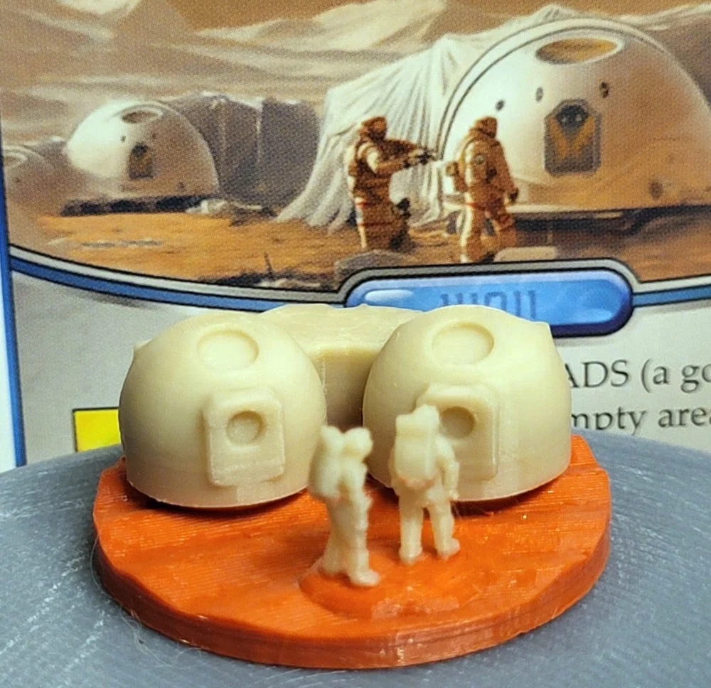 Token Mars Nomads dùng thay cho khối vàng trong thẻ Project “Mars Nomads” (Kickstarter 2 Promo) của Terraforming Mars. Thiết kế gồm phần dome tự làm và các STL remix (astronaut/sa mạc/đá).