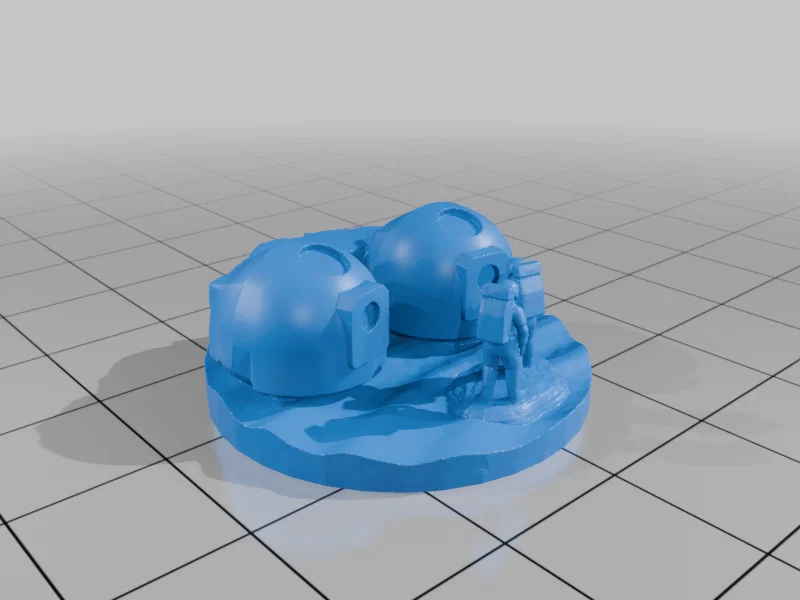 Mái vòm được thiết kế bằng Fusion 360 và xuất ra file .STL sang MeshMixer. Tại đó, nó được ghép với các file .STL remix khác, đồng thời thêm phần lều phía sau.