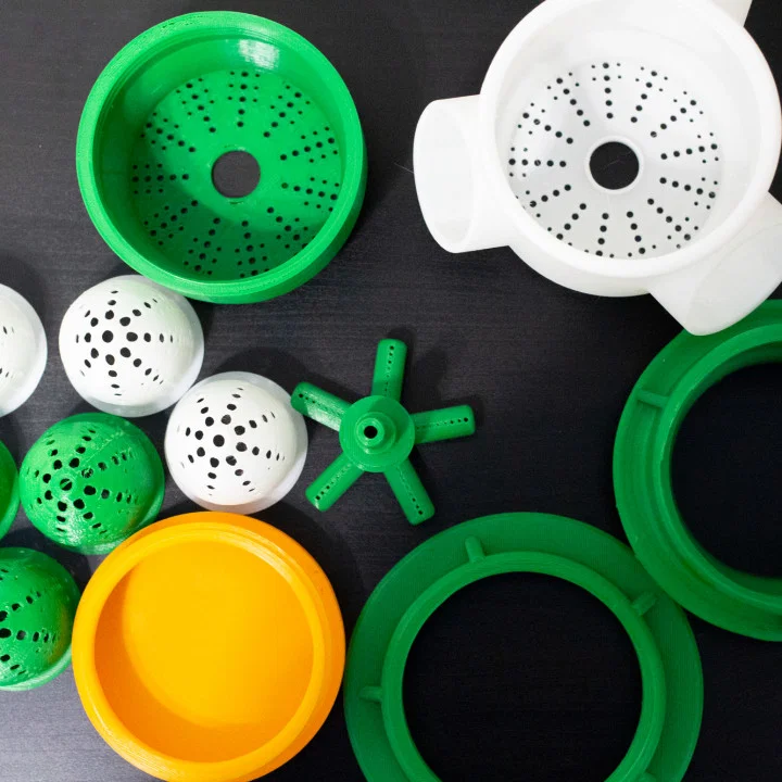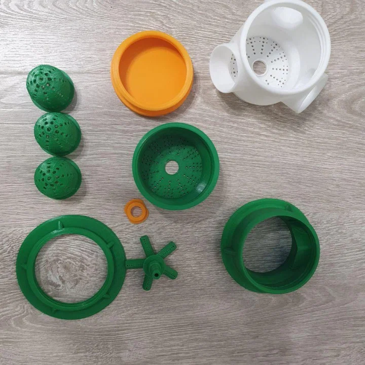 Mẫu tháp thủy canh dạng đứng thiết kế module. Bạn cần in toàn bộ chi tiết và chuẩn bị thêm xô nhựa tối màu có nắp, máy bơm nước (loại aquarium) cùng ống hose để nối lên dispenser trên đỉnh tháp. Khuyến nghị in PLA.