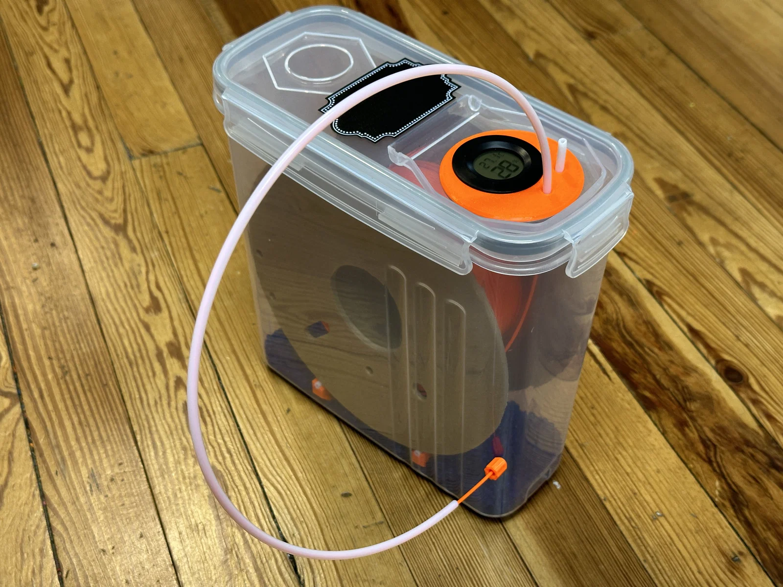 Kết hợp cực hợp với và PTFE spool holder for drybox của mình để làm một bộ drybox hoàn chỉnh, chứa được 1 cuộn filament 1kg (hoặc nhỏ hơn). Phần drybox cap filler của mình còn có chỗ chừa cho một đoạn ống PTFE ngắn để cất món này khi cuộn filament đang nối với máy in.