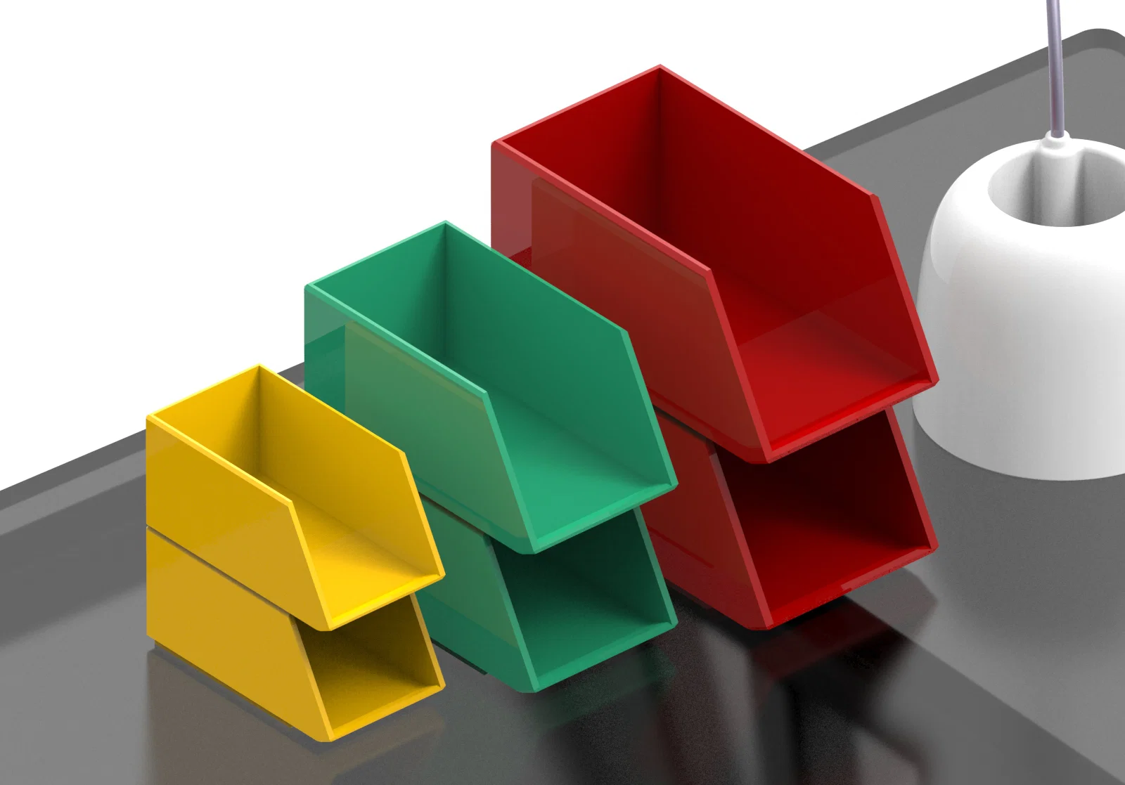 Bạn đang tìm cách để bàn làm việc trở nên gọn gàng và ngăn nắp hơn? Hãy thử ngay mẫu bộ khay nhựa xếp chồng đa năng (Stackable Work Desk Organiser) này. Với thiết kế thông minh gồm 3 kích thước khác nhau, sản phẩm giúp bạn phân loại và lưu trữ bút viết, dụng cụ làm việc hoặc các vật dụng nhỏ một cách khoa học. Điểm đặc biệt của mẫu in này chính là khả năng xếp chồng lên nhau linh hoạt, giúp tiết kiệm tối đa diện tích mặt bàn theo chiều dọc. Thiết kế hở miệng tiện dụng cho phép bạn lấy đồ vật nhanh chóng mà không gặp trở ngại. Đây là một món phụ kiện 3D hữu ích cho bất kỳ không gian làm việc hay góc sáng tạo nào, vừa bền bỉ, vừa dễ dàng tùy biến màu sắc theo sở thích cá nhân.