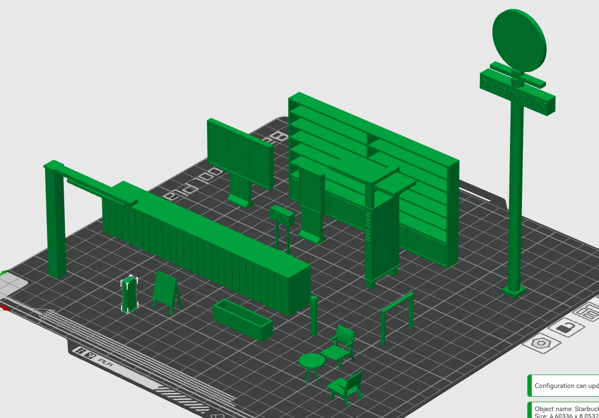Bộ props dùng cho mô hình tòa nhà Starbucks, thiết kế theo đúng kích thước thật. Hiện chưa có logo tự thiết kế và tác giả chưa in thử do đang hoàn thiện building; hoan nghênh góp ý và báo lỗi.
