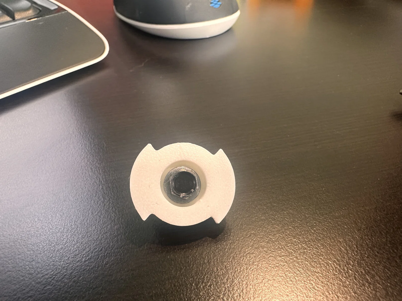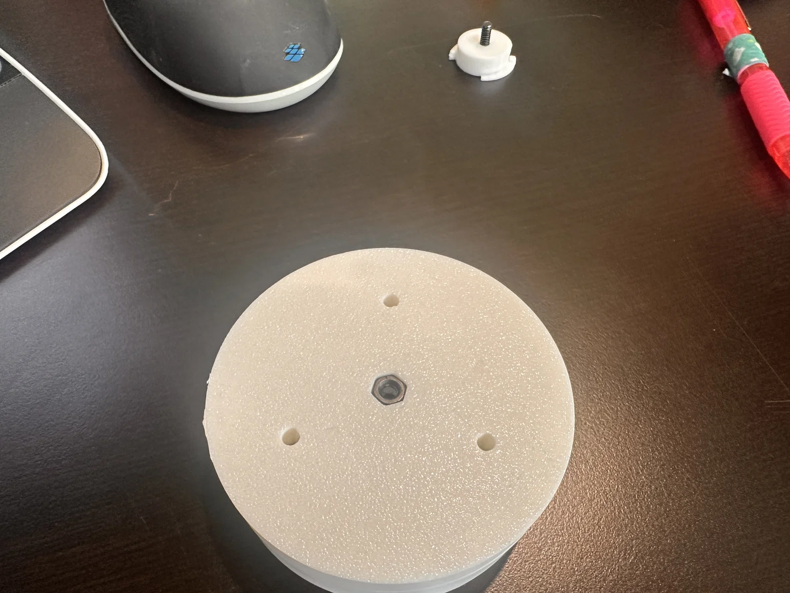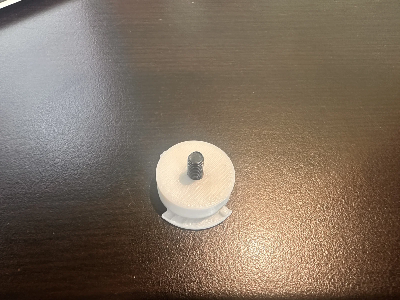 Hai phần này ghép với nhau bằng một con ốc M4x12mm, có washer ở phía camera mount và một ê-cu captive nằm trong base plate. Phần lõm (inset) quanh đầu ốc trên camera mount đủ rộng để dùng đầu tuýp 7 mm.