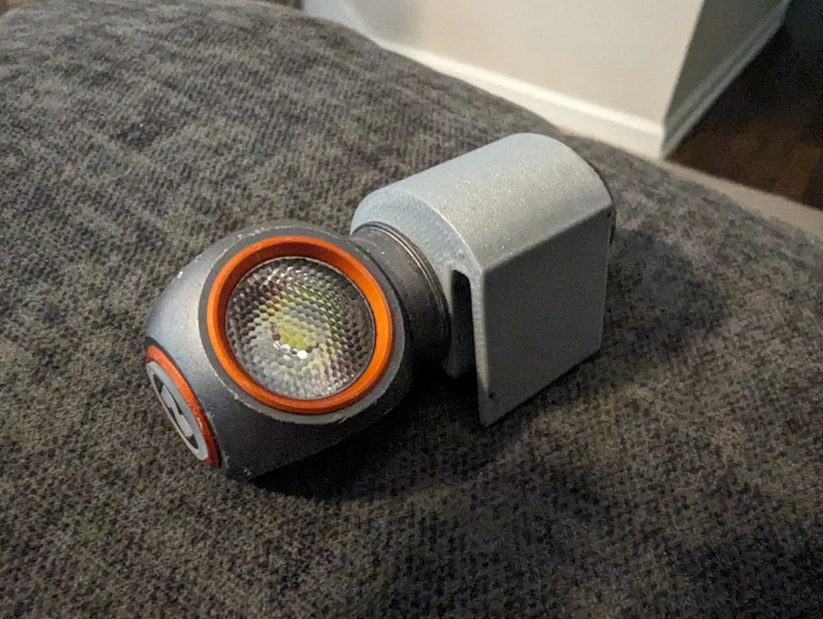 Đây chỉ là một giá đỡ đèn pin đơn giản và cũng có thể kẹp vào mũ hoặc thắt lưng. Nó nên phù hợp với hầu hết các đèn pin 19mm, nhưng được thiết kế đặc biệt cho đèn pin Mini Nebo Einstein 600.