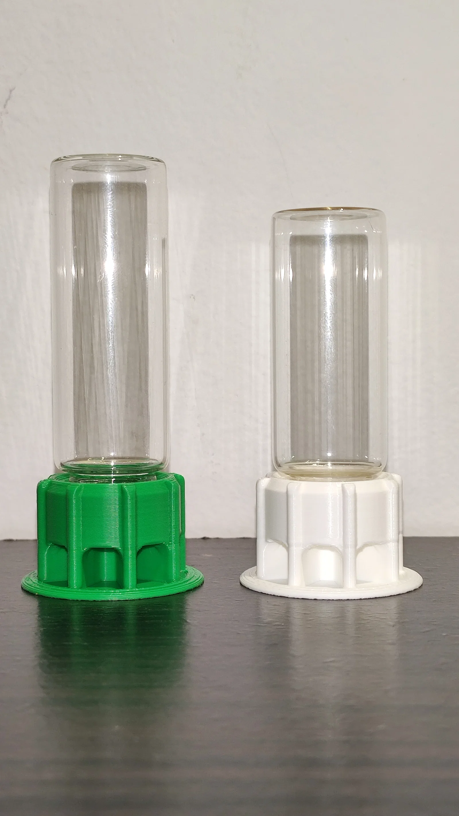 Bebedero cho kiến và các loài côn trùng khác. Đây là phiên bản thứ 2 của mẫu bebedero mình thiết kế để dùng với các ống vial thủy tinh mua trên AliExpress. Các vial có đường kính phần ren 22mm và dung tích từ 5ml đến 30ml. Nếu bạn dùng trong khu foraging của AntDimension, thì MK2 Mini sẽ vừa tối đa vial 14ml, còn các MK2 thường sẽ vừa đến vial dung tích 20ml.