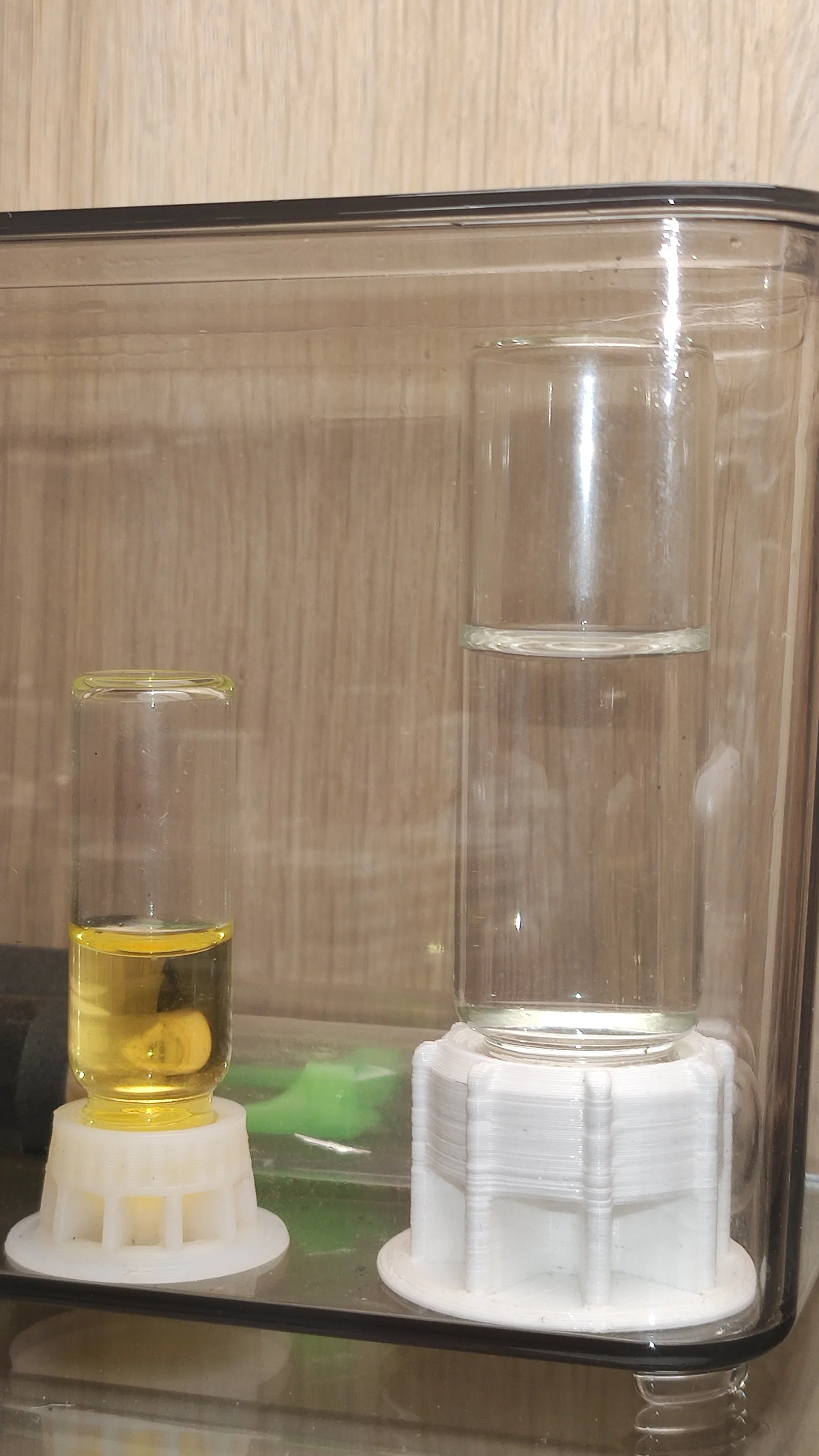 Mẫu có miệng vào rộng và lỗ lớn để các loài kích thước lớn cũng dùng được. Ngoài ra còn có một lớp lưới kim loại để giữ sức căng bề mặt, tránh làm vial bị xả/thoát nước, đồng thời giúp các loài nhỏ vẫn dùng được mà không sợ bị đuối. Một điểm mình cũng thêm ở version 2 là các rãnh ở phần đáy, tạo độ nổi giúp dễ gỡ ra khỏi nền của khu foraging.