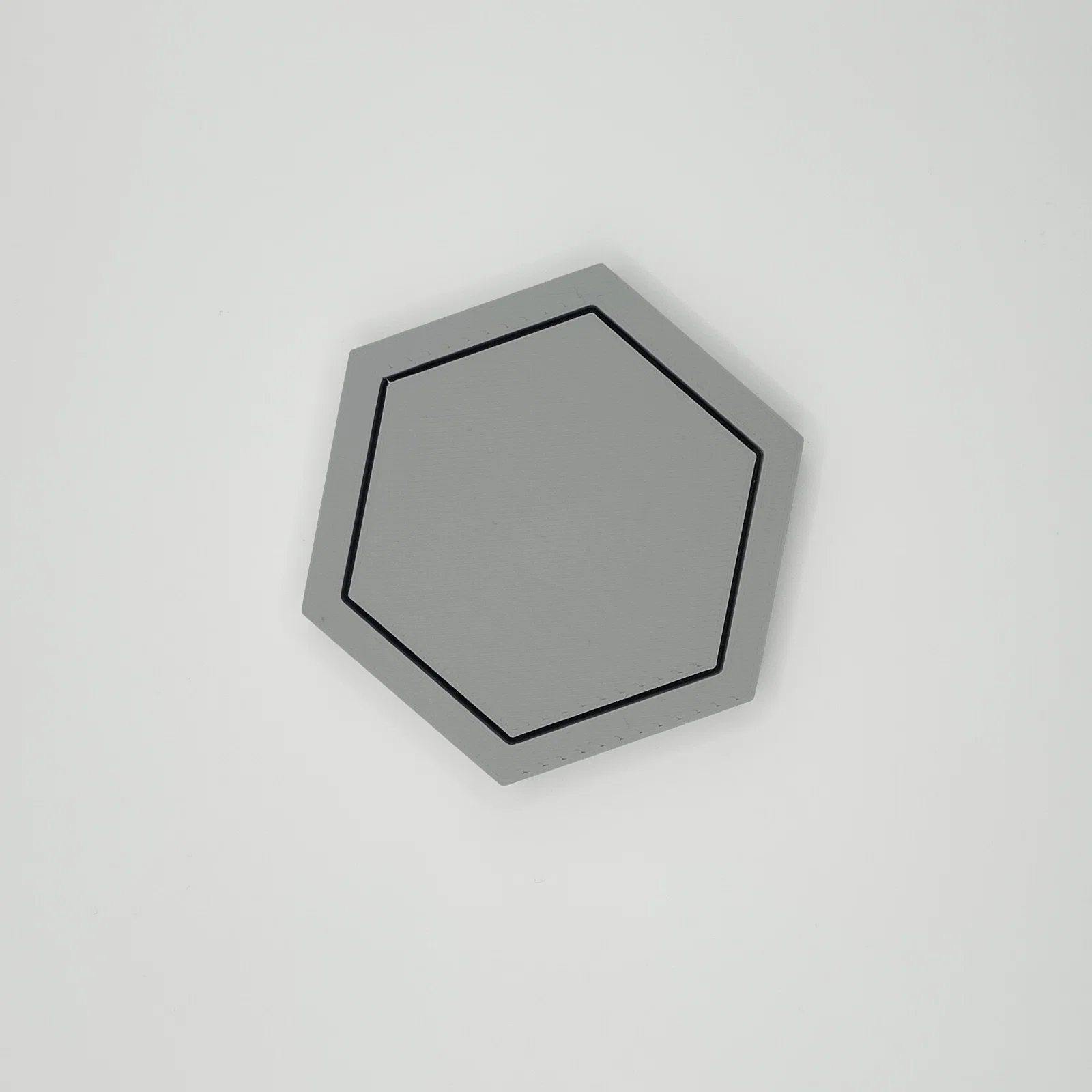 Miếng lót ly (coaster) hình lục giác mang phong cách hiện đại, phù hợp dùng cho cà phê, nước uống và trang trí bàn làm việc hoặc phòng khách. Thiết kế gọn đẹp, dễ in 3D và dùng hằng ngày.
