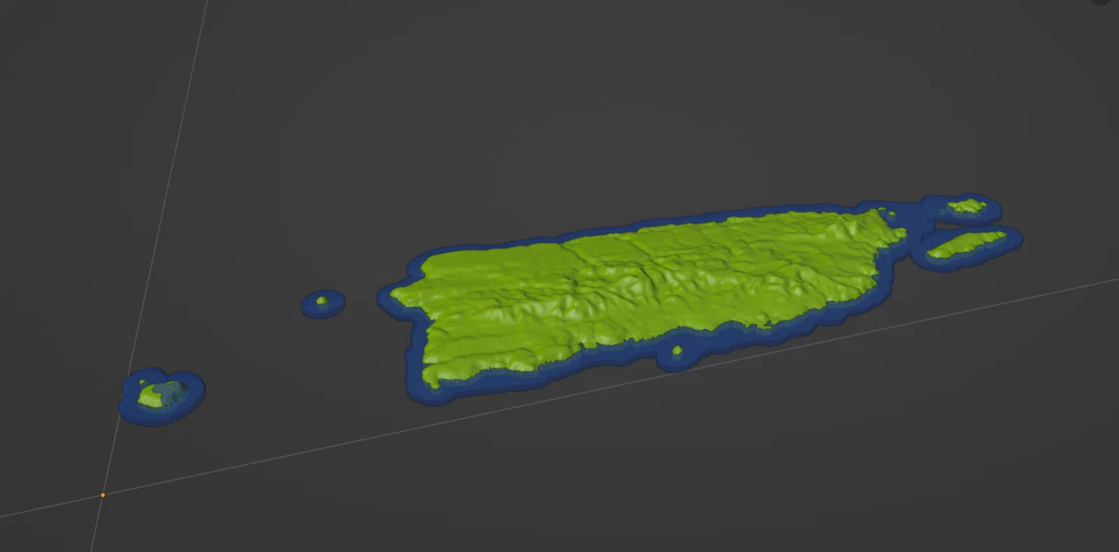 Bản đồ địa hình (terrain/topographic) của Puerto Rico, lãnh thổ của USA. Tỷ lệ 1:2500000, độ phân giải khoảng ~1km. Phần bờ biển có thể in bằng màu thứ hai để nổi bật hơn.