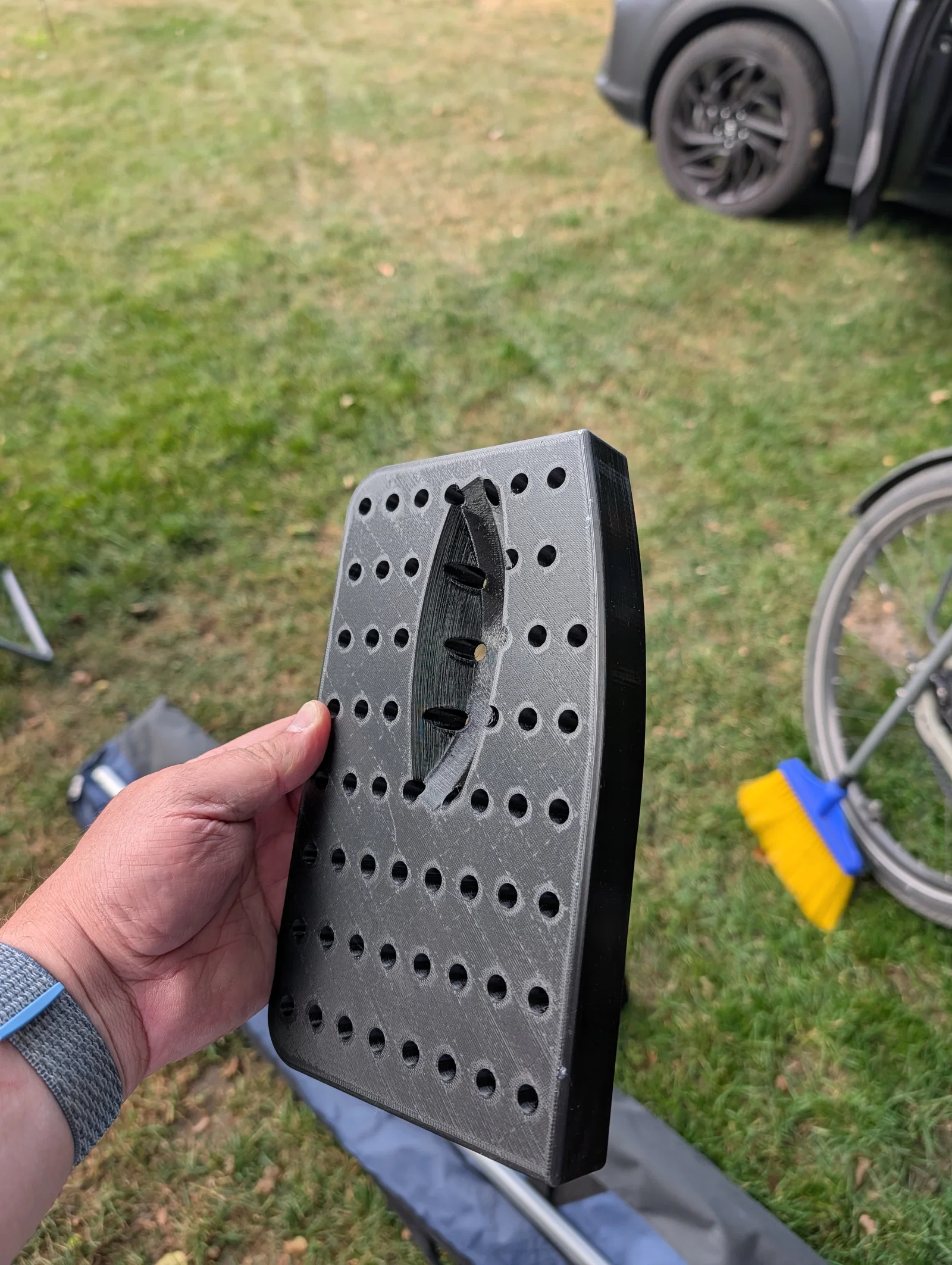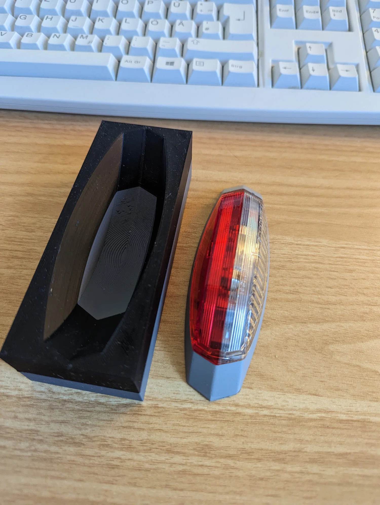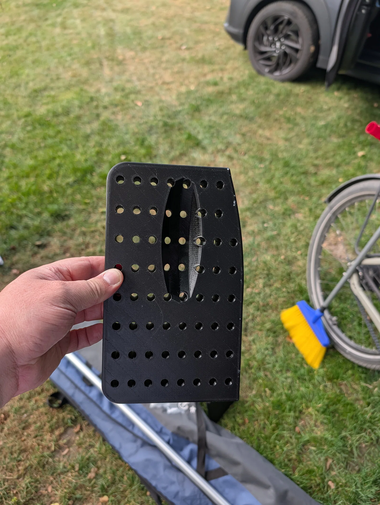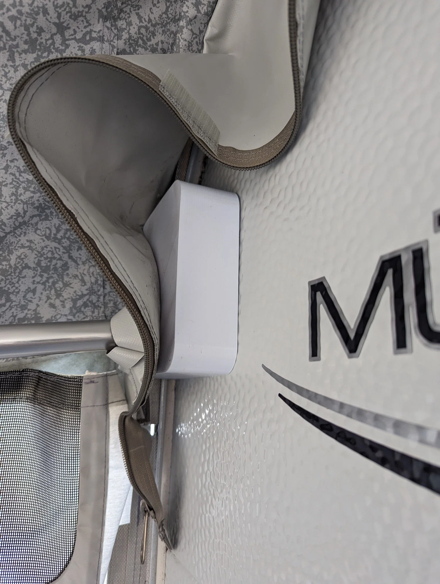 Đèn giới hạn vướng với các trụ Wigo. Thường thì trụ lại nằm đúng chỗ cái đèn. Vì vậy mình làm cái ngàm/giá đỡ này. Nó ôm rất khít phía trên đèn và đi theo đúng đường nét (contour) của chiếc caravan.