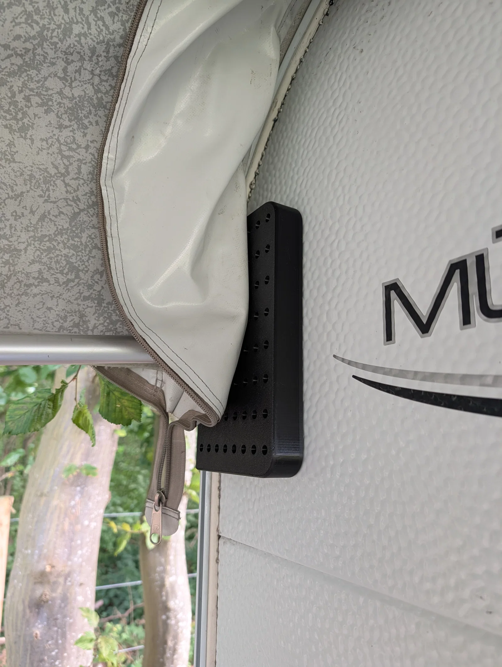 Giải pháp cho LMC Style 530 E (2022) khi đèn giới hạn phía sau bị vướng với trụ Wigo. Giá đỡ này ôm vừa qua đèn và bám theo contour thân caravan; in PETG, walls 3, infill 25% Gyroid, có bản lớn hơn.