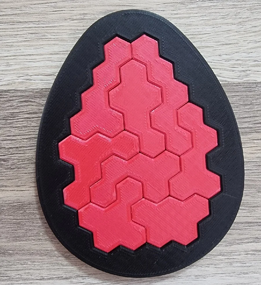 Bộ puzzle hình quả trứng gồm 8 miếng “pentahexes” (mỗi miếng từ 5 hình lục giác). Khay dạng egg có tới 221 cách xếp vừa khung—đủ thử thách cho mọi lứa tuổi. Có kèm file Laser Cut.