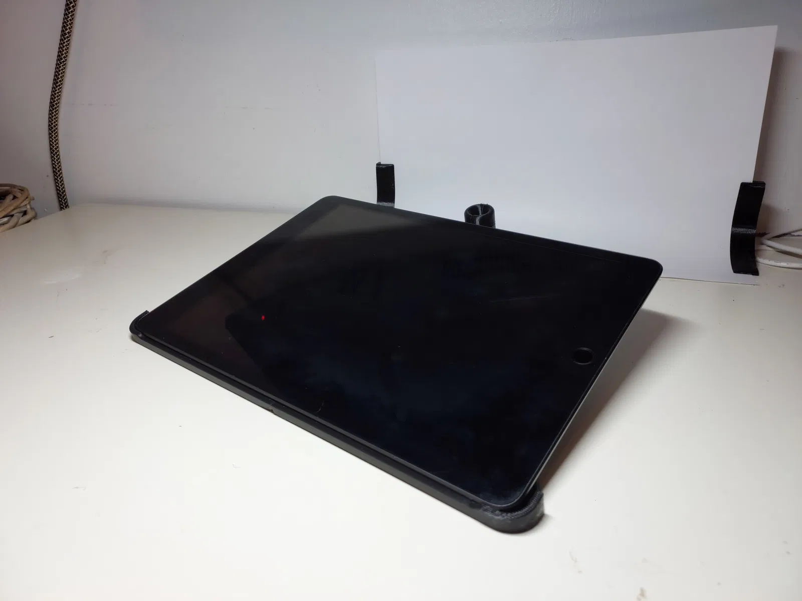 Một giá đỡ cho iPad thế hệ 7 với độ nghiêng 15 độ để viết hoặc vẽ trên đó. Có một chỗ để bút với đường kính 10mm. Được in thành 2 nửa để có thể phù hợp với hầu hết các giường in, dung sai 0.12 mm trên các khe nên sẽ vừa vặn và chặt chẽ. Nếu bạn cần nó có dung sai lớn hơn, chỉ cần bình luận về điều đó.