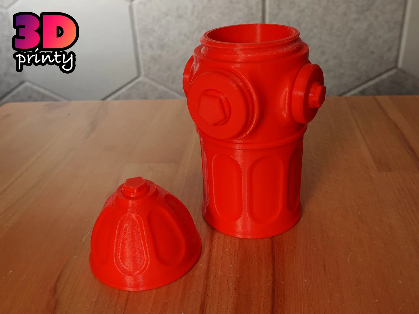 Mẫu hộp đựng hình trụ cứu hỏa với nắp vặn đơn giản. Thiết kế tối ưu cho in 0.2mm layer height, 0.4mm line width, in được không cần support. Lắp ráp dễ: dán keo hoặc dùng ốc M3, rồi vặn nắp.