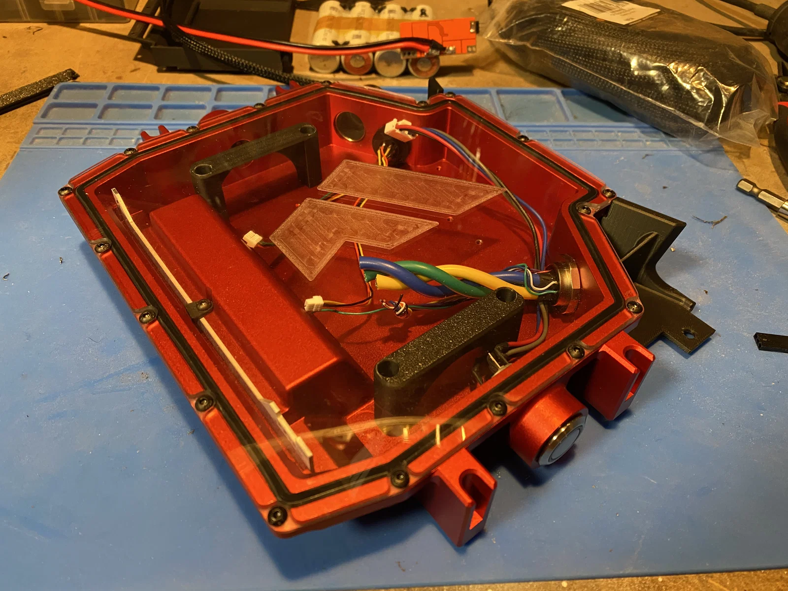 Bracket gắn pin tuỳ chọn cho Funwheel Box để bố trí pin theo cấu hình split pack. In 2 cái, có kèm file STEP để chỉnh sửa. Thiết kế theo pin 144×44×28mm và lắp bằng ốc M3x5mm để cố định và đỡ nắp.