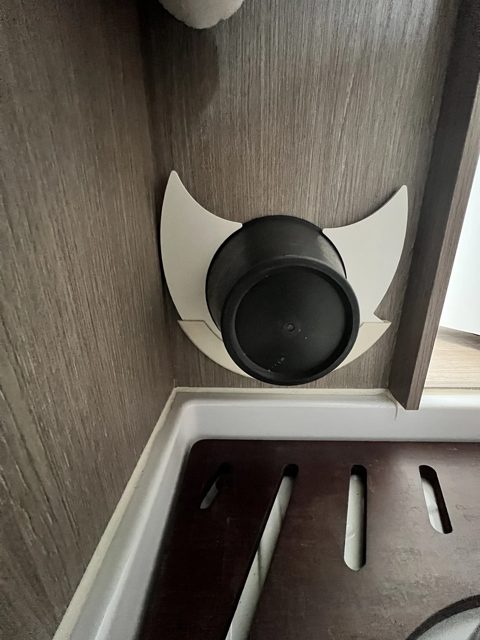Ngàm/giá đỡ cho Flexaport insert dùng cho camping toilet. In làm 2 nửa rồi dán lại, có pin và lỗ (tolerance 0,15mm) kèm miếng test để canh. Có bản dán nano tape và bản có lỗ bắt vít.