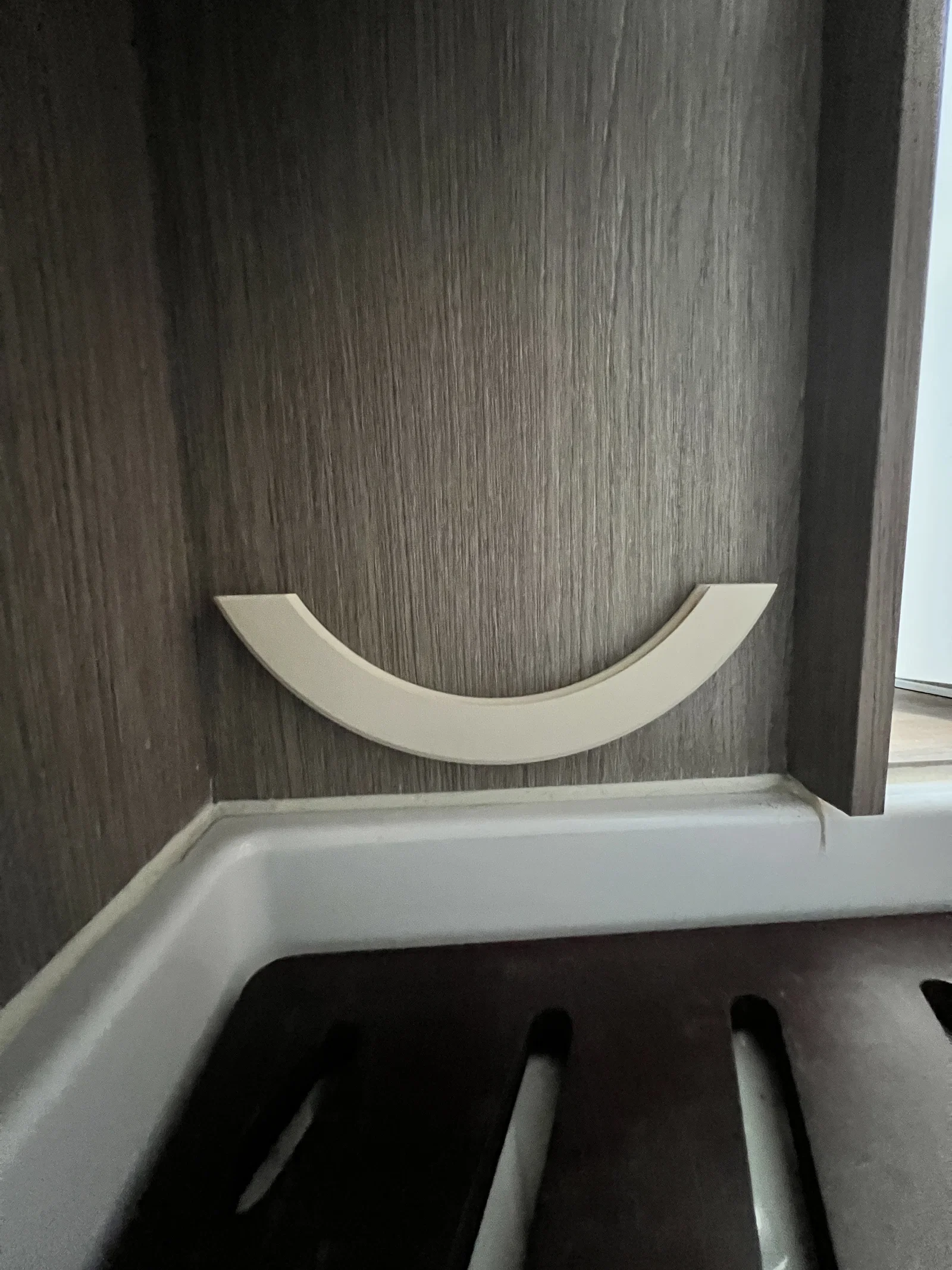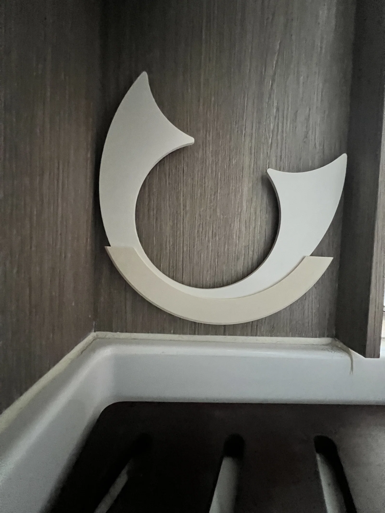 Chi tiết này sẽ được in thành 2 nửa, sau đó dán keo lại với nhau. Cách này còn có lợi là bề mặt nhìn thấy sẽ đẹp và ít “ra chất 3D print” hơn, vì mặt đó úp xuống bed (mình dùng tấm textured PEI). Mình có thiết kế pin và lỗ để canh khớp lúc dán cho chuẩn. Với các lỗ, mình chừa tolerance 0,15mm, với máy mình thì chạy ngon. Nhưng vì mỗi máy in và mỗi loại filament khác nhau, mình khuyên thật là nên in trước 2 miếng test nhỏ để thử. Vừa đỡ bực mình vừa tiết kiệm filament! Nếu pin không vô lỗ, bạn có thể chỉnh trong slicer bằng “X-Y hole compensation” cho phù hợp.